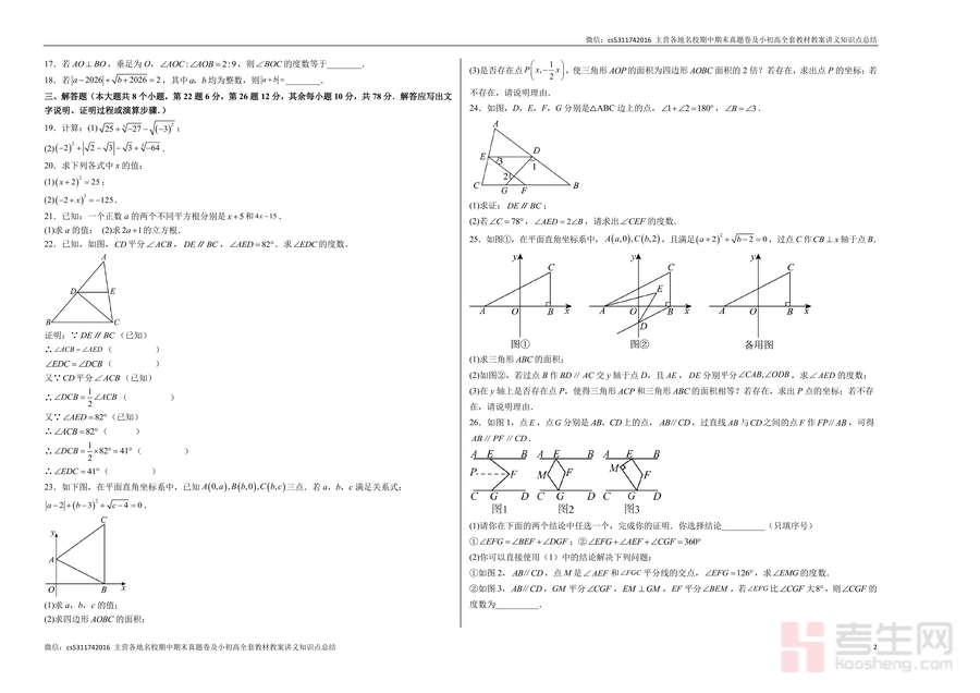 该模拟卷的核心用途为期中备考阶段的自测评估与知识查漏补缺,适用场景包括课堂限时模拟考试、课后自主练习、教师备课组命题参考等。对学生而言,通过限时完成该卷可熟悉期中考试节奏与题型分布,精准定位薄弱环节(如平行线证明逻辑链构建、坐标系综合题解法),进而针对性提升应试能力;对教师而言,可借助该卷快速掌握学生对7-9章知识点的掌握程度,调整教学重点。其备考优势在于内容与重庆本地期中考点高度契合,避免泛用资料与本地考情脱节问题,帮助师生高效聚焦核心考点。