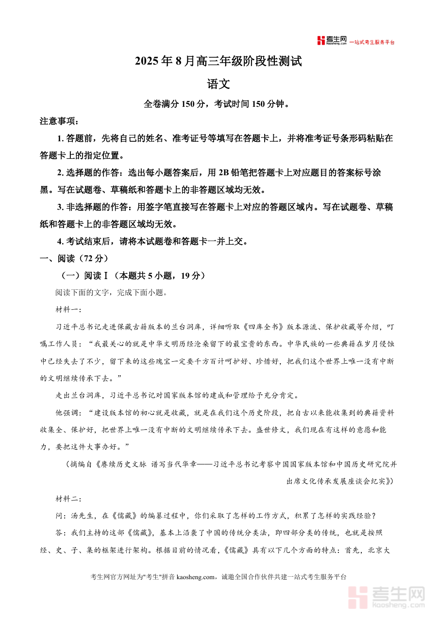 精品解析山西省忻州市部分学校20252026学年高。三8月月考语文试题解析版docx是一份针对相关考试。精心打造的专业备考资料核心围绕考试的关键考点命题趋。势和备考需求展开为考生提供系统化高效的备考支持这份。资料不仅涵盖了全面的知识点梳理还融入了大量的真题解。析题型训练和模拟演练帮助考生精准把握考试重。