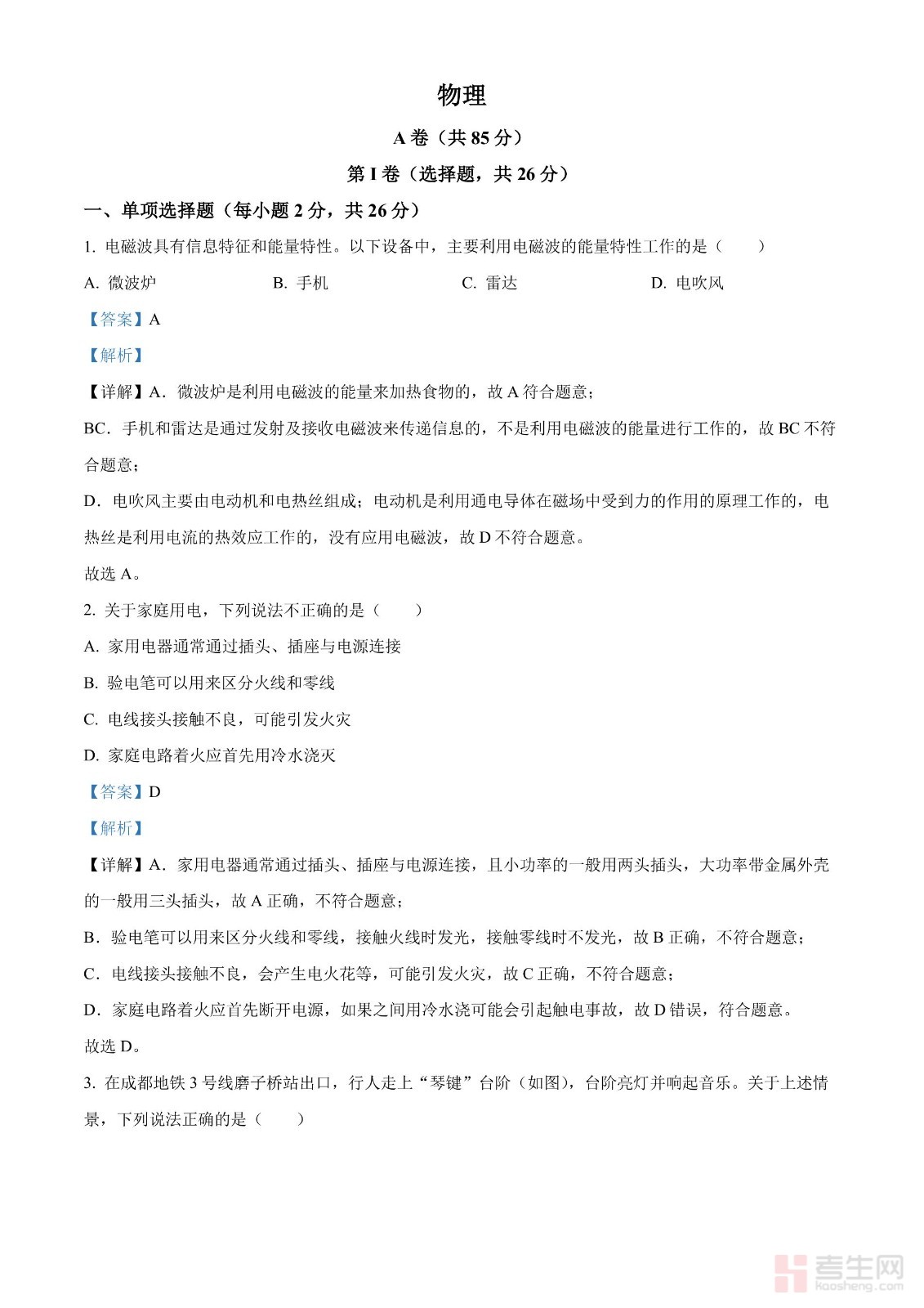 2024年四川省成都市中考物理试题(解析版)
