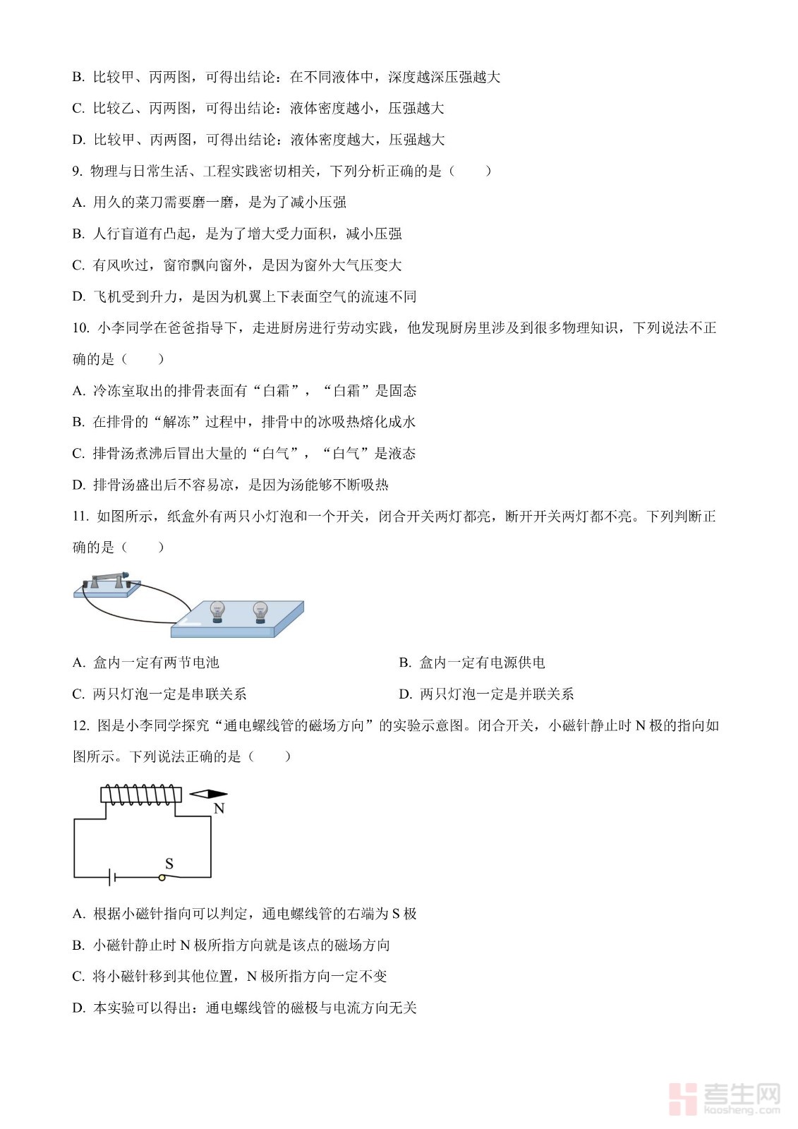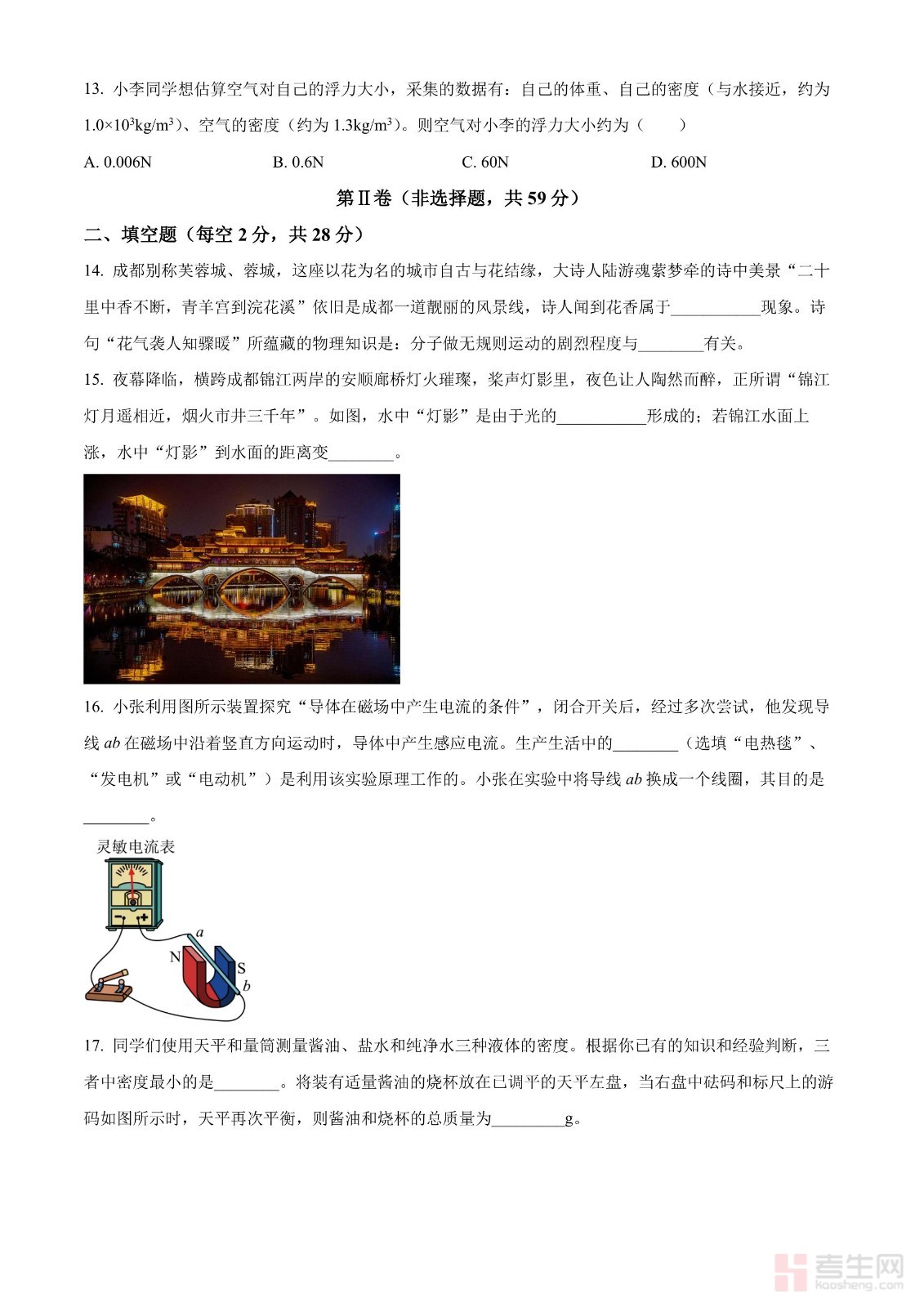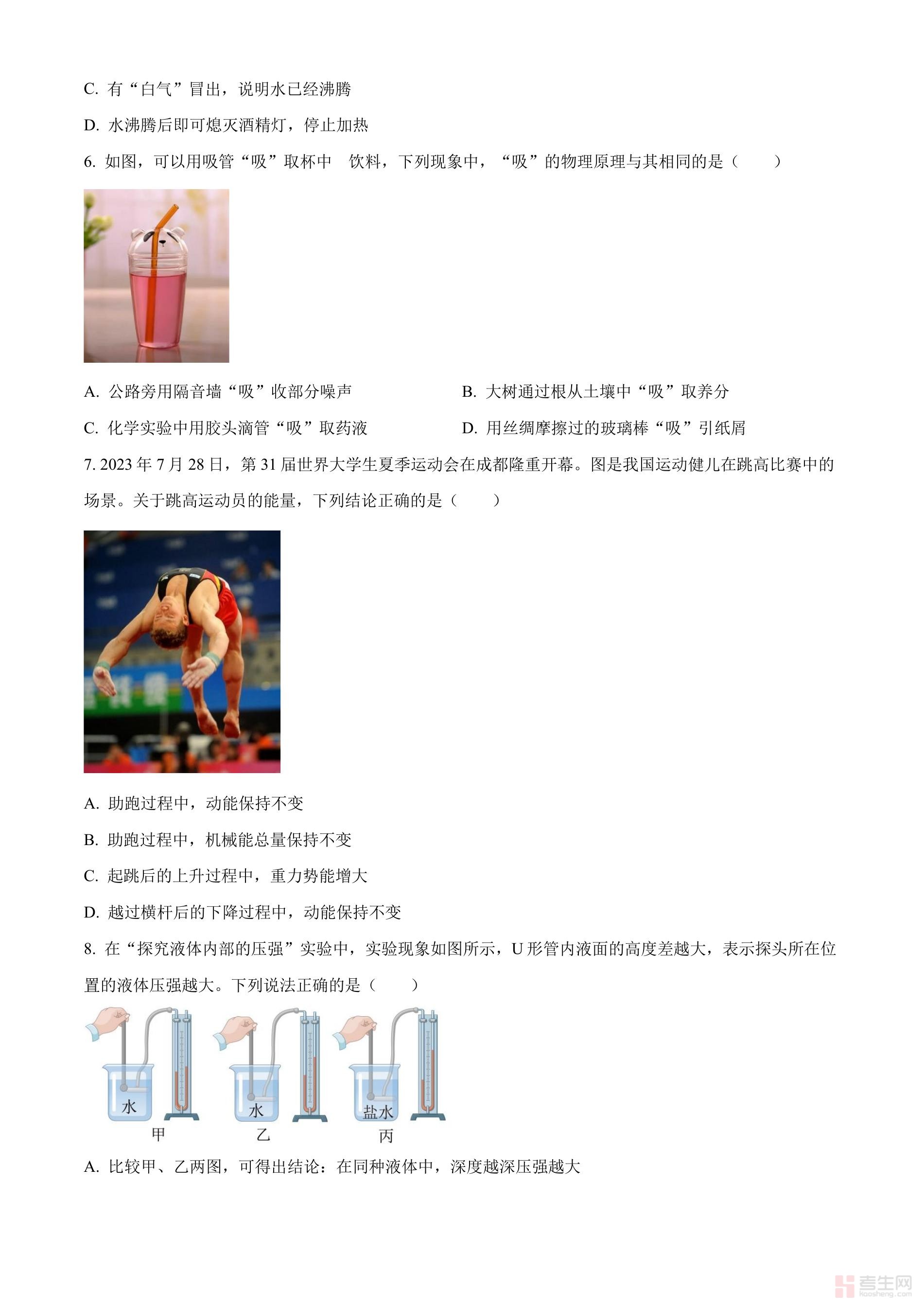 2024年四川省成都市中考物理试题(原卷版)