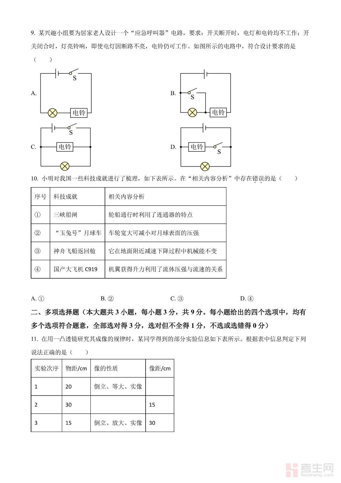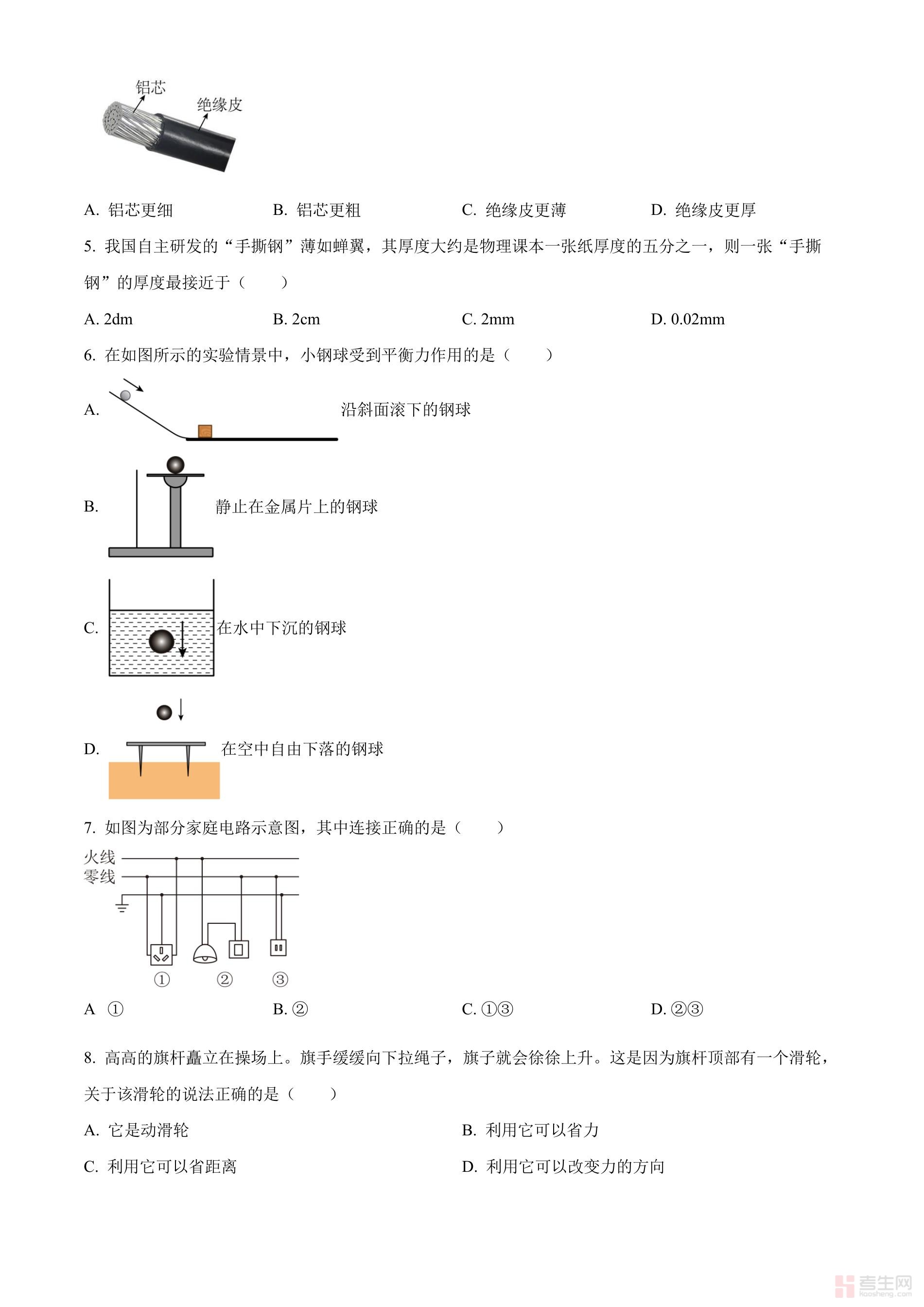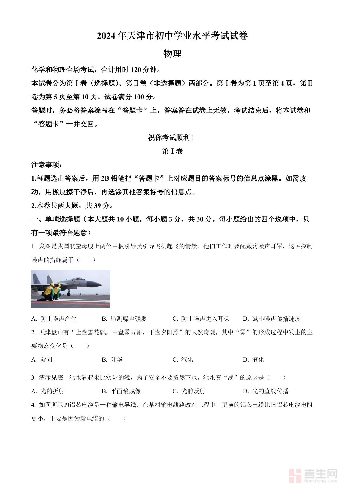 2024年天津市中考物理试题(原卷版)