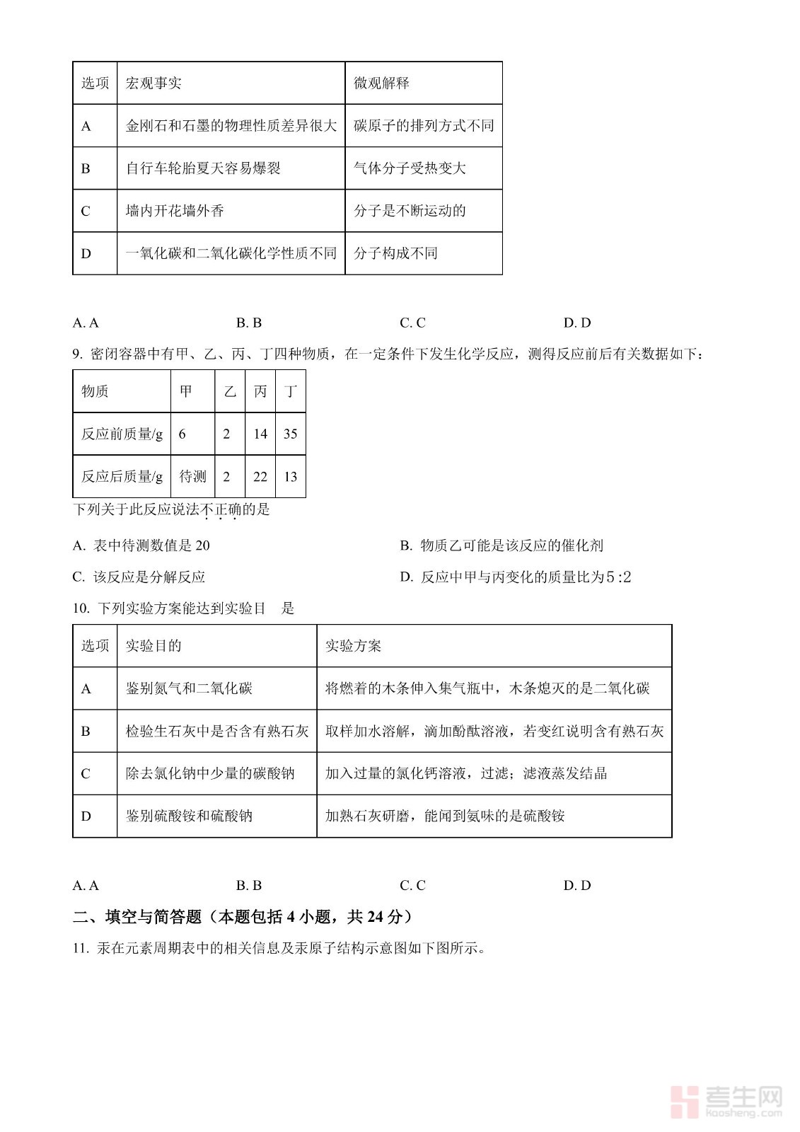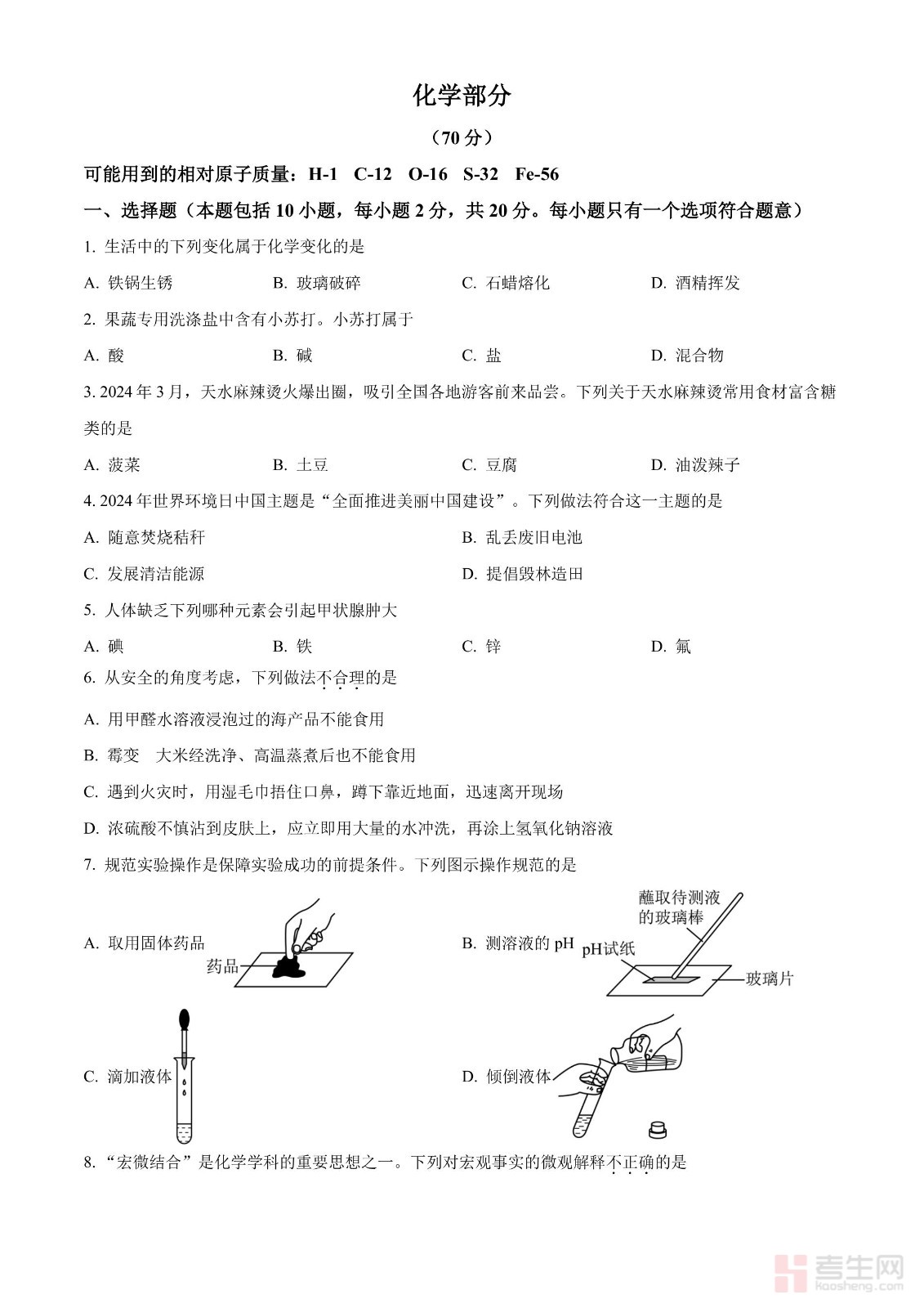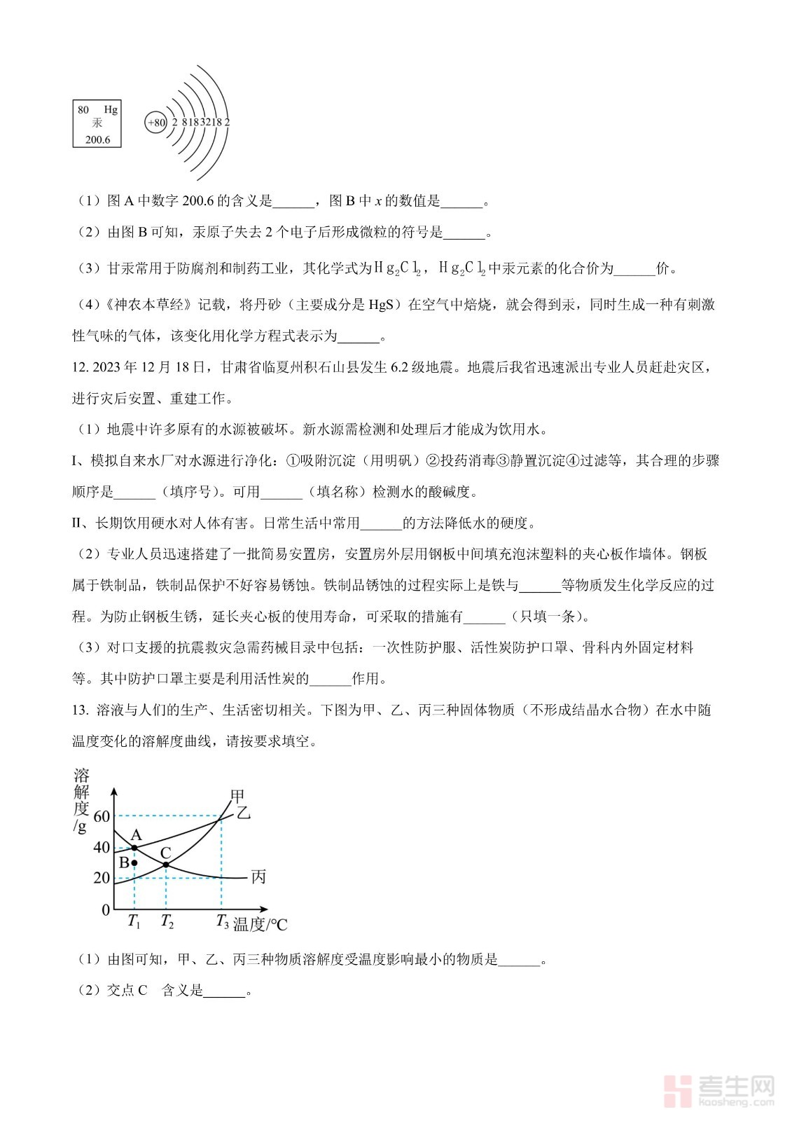 2024年甘肃省中考化学真题(原卷版)