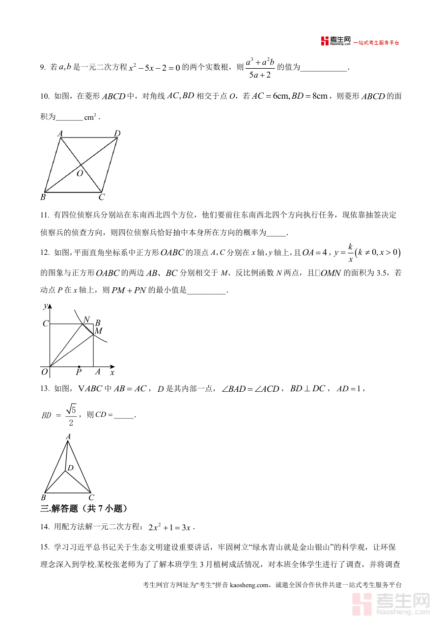这份资料主要用于该学校九年级学生在期中阶段进行数学学习成果检测及备考准备。通过使用该原卷,学生可以提前熟悉本次期中考试数学科目的试卷结构、题量分布及考查形式,帮助他们在正式考试前做好充分应试准备;同时,也为教师提供了解学生期中阶段数学学习情况的工具,辅助教师开展针对性教学与复习指导。