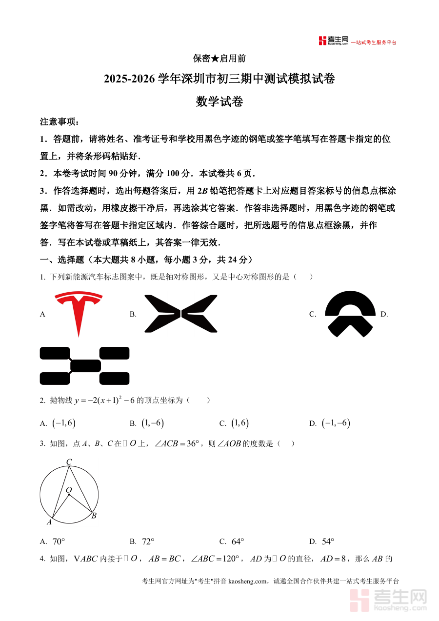 精品解析广东省深圳市多校联考20252026学年九。年级上学期10月期中数学测试模拟试题原卷版docx。是一份针对特定阶段考试的备考资料核心围绕考试的时间。地区与用途展开为考生提供阶段检测与备考参考这份资料。的核心用途在于帮助对应年级的学生明确学习重点通过阶。段考试诊断学情为后。
