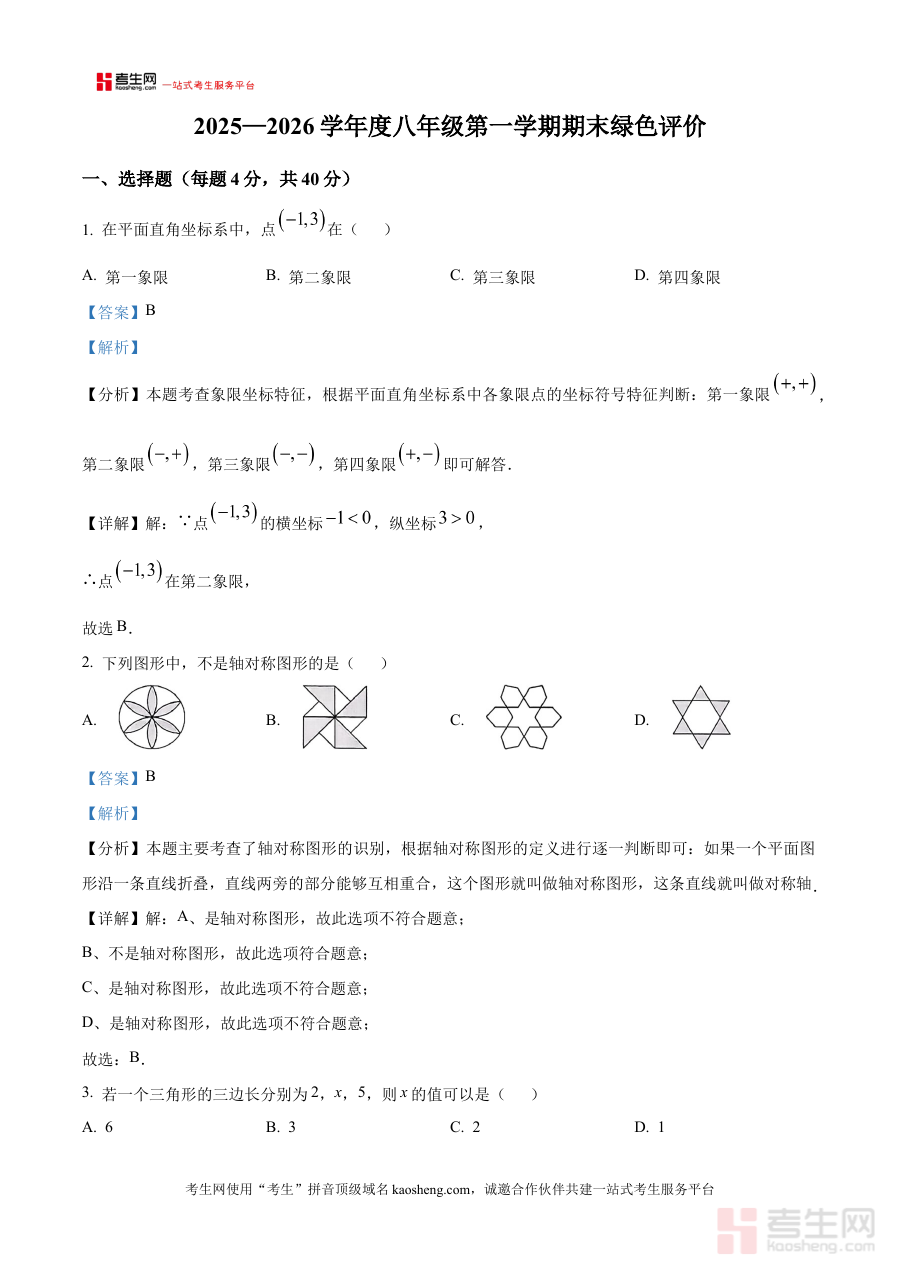 《精品解析:安徽省合肥市第四十五中学2025-2026学年八年级上学期数学期末试卷(解析版)》是面向安徽省合肥市第四十五中学2025-2026学年八年级学生的数学学科上学期期末备考资料。它精准对应该校该学年八年级数学的教学进度与期末考核标准,为学生提供了与本校期末考题型、难度及考查范围高度契合的练习资源,有助于学生提前熟悉本校期末考的命题特点与考查方向,为后续系统复习做好针对性准备。