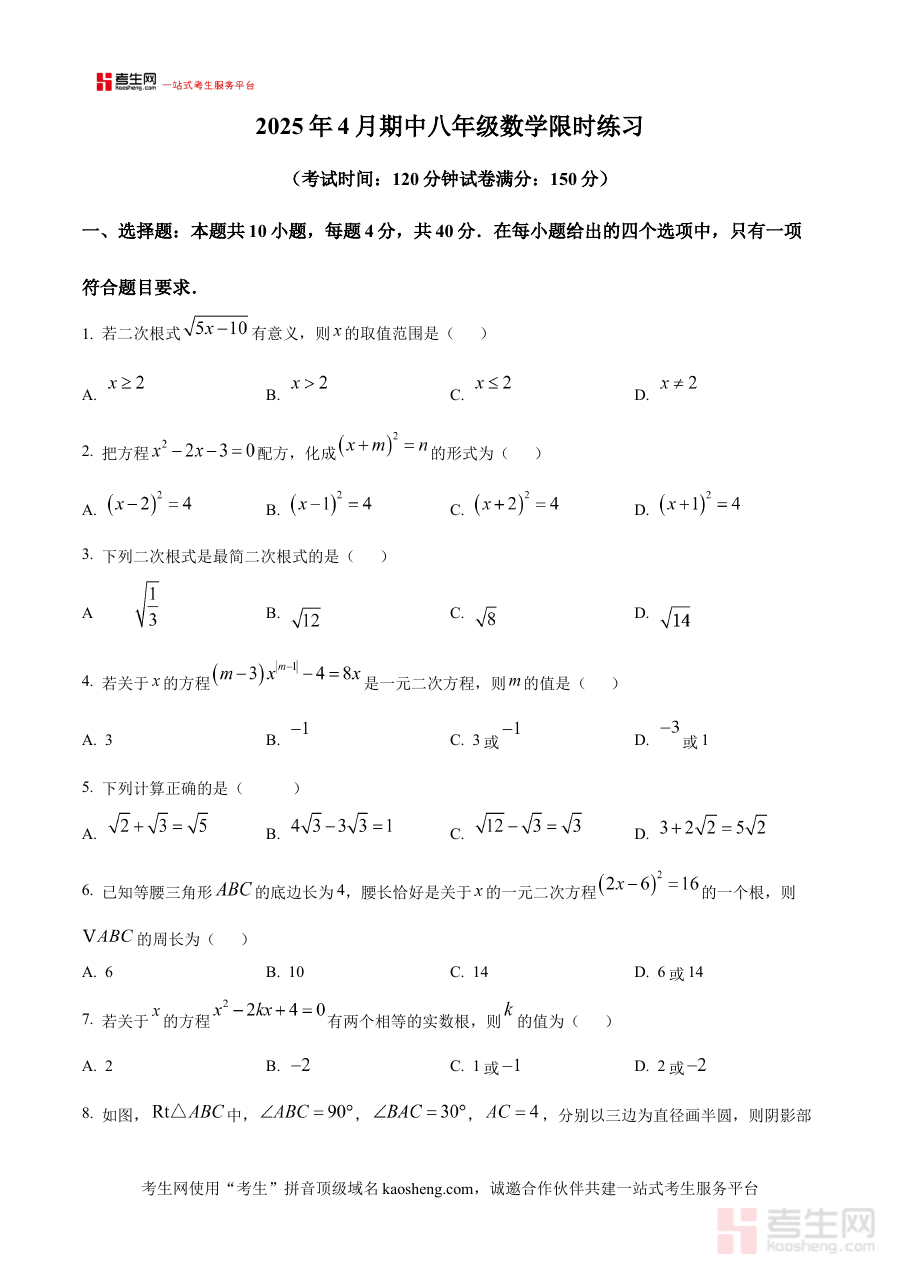 作为阶段性考试的原卷资料,该试题可用于八年级学生的学情诊断,帮助学生及时发现自身在数学学习中的薄弱环节;同时也为教师提供了阶段教学效果评估的依据,助力教师调整后续教学策略和复习计划;此外,对于备考规划而言,该原卷版试题能让师生清晰把握期中数学考试的命题框架和考查范围,为针对性复习提供明确指引,避免复习方向的偏差,提升复习效率和效果。