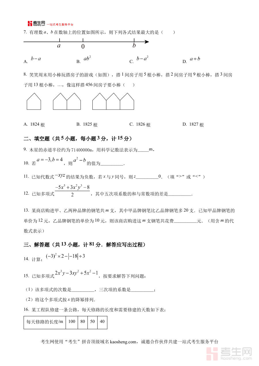 本资料主要适用于陕西省西安市临潼区参与本次期中考试的七年级学生、一线数学授课教师及区域内教育教研人员。对于学生而言,可通过原卷提前熟悉考试形式、时间分配与题目排布节奏;对于教师而言,可借助其进行阶段性教学效果的全面检测与评估,为后续教学计划的优化提供可靠依据;教研人员则可通过分析原卷内容把握区域教学动态,整体提升期中备考的科学性与有效性。