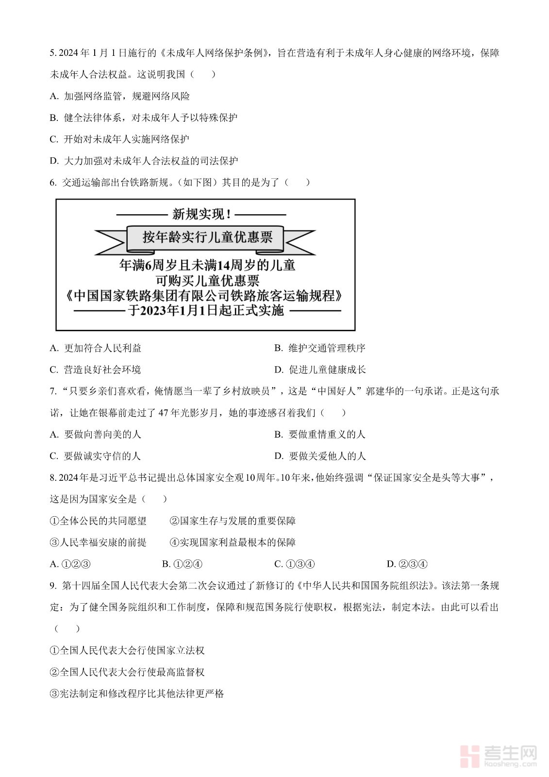 2024年内蒙古自治区包头市中考道德与法治真题(原卷版)