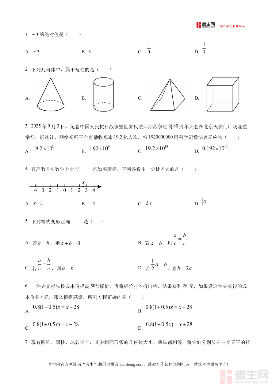 《精品解析:北京二中教育集团2025-2026学年上学期七年级数学阶段练习试题(原卷版)》是北京地区2025-2026学年上学期针对七年级数学学科的阶段性练习资料,由北京二中教育集团推出,属于集团内部阶段性检测类试题资源。该资料贴合七年级上学期数学学科的阶段学习目标,为相关阶段的数学学习提供标准化的检测内容,是适配该阶段学习进度的备考辅助材料。