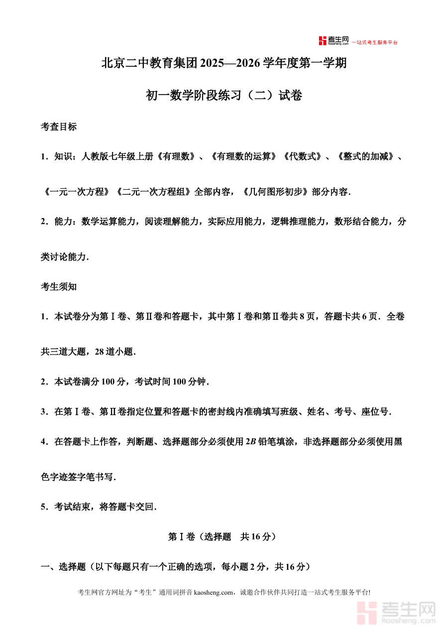 《精品解析:北京二中教育集团2025-2026学年上学期七年级数学阶段练习试题(解析版)》是针对北京地区北京二中教育集团范围内,2025-2026学年上学期七年级数学学科的阶段练习试题解析资料,旨在为相关学习者提供该阶段数学练习的专业解析支持,帮助其了解阶段练习的考查方向与要求。