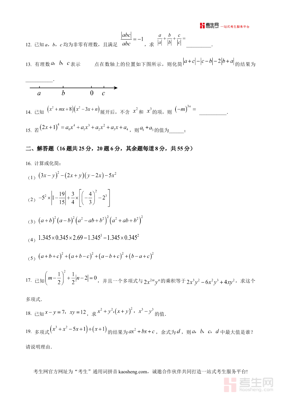 此资料适用于北京市十一学校2025-2026学年上学期的七年级学生、数学教师及学生家长。对于学生而言,接触原卷形式的开学测试题可提前熟悉考试模式与考查方向,为开学后的正式测试做好充分准备;对于教师和家长,则能通过该资料把握开学测试的考查重点,更精准地指导学生进行阶段检测与备考规划,有效提升学习效率与备考效果。