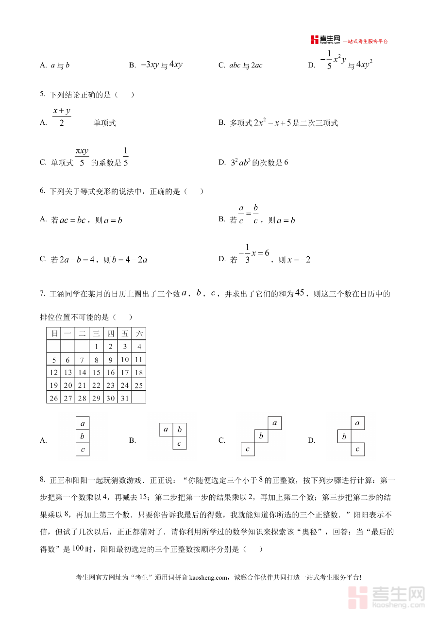 该资料可用于七年级学生开展期中前的自我学习效果检测,帮助教师掌握学生对前期数学知识的掌握程度,也能为家长辅助孩子制定备考规划提供参考依据;通过原卷版呈现形式,还原真实考试情境,助力使用者提前熟悉考试流程与要求,为高效备考奠定基础。