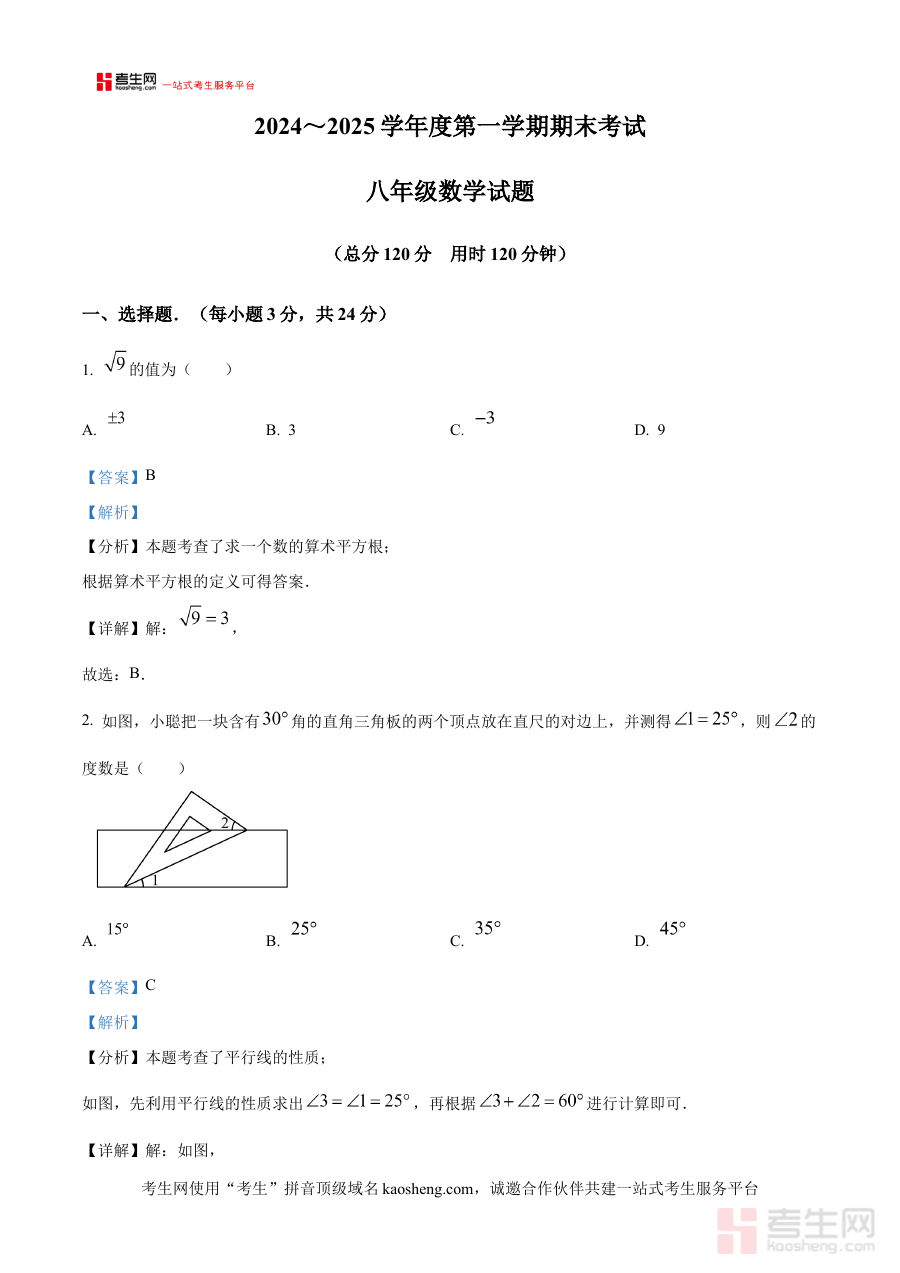 《精品解析:陕西省西安市高新二中2024-2025学年八年级上学期期末考试数学试题(解析版)》是针对陕西省西安市高新二中特定学年学段的数学期末备考资料。它聚焦2024-2025学年八年级上学期数学期末考试需求,结合该学校教学进度与期末检测标准,为使用者提供与本次考试高度匹配的解析内容,帮助把握考试整体脉络与核心方向,是一份贴合实际、针对性强的复习参考材料。