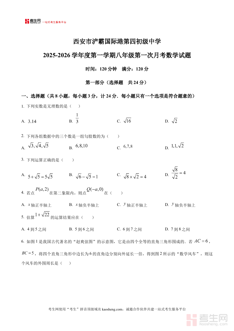 《精品解析:陕西省西安市浐灞国际港第四初级中学2025--2026学年上学期八年级第一次月考数学试题(原卷版)》是针对陕西省西安市浐灞国际港第四初级中学特定学年学期的数学阶段性测试资料,对应2025至2026学年上学期八年级学生的首次月度数学考试。作为该次考试的原始试卷版本,它直接呈现了考试的命题载体与形式框架,是学生备考该次月考、教师开展教学准备的重要基础资料,能够帮助使用者直观把握该次考试的整体结构与基本呈现方式,为后续的学习与教学活动提供明确的方向指引。
