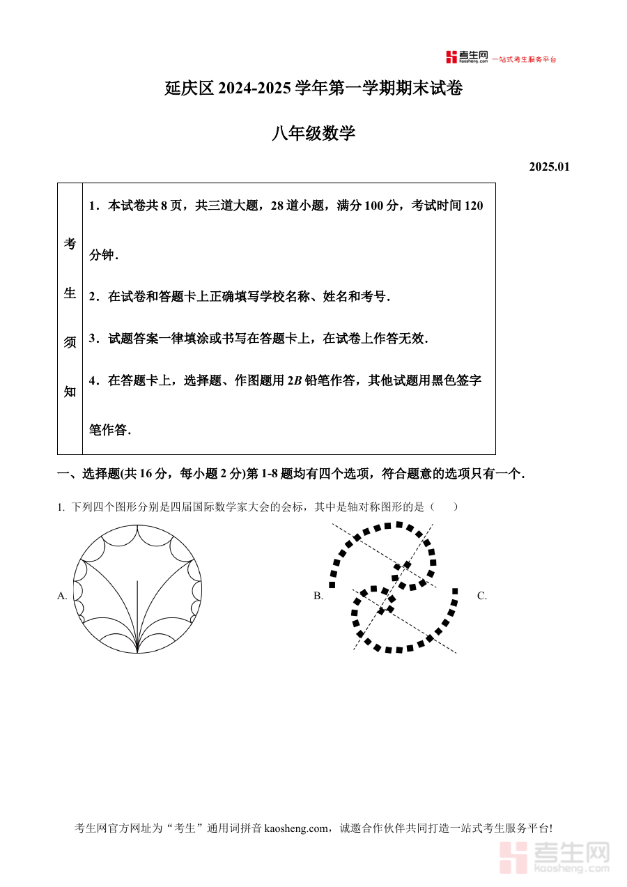 《精品解析:北京市延庆区2024-2025学年八年级上学期期末考试数学试卷(解析版)》是针对北京市延庆区2024至2025学年八年级学生上学期数学期末考试的专项备考资料。该资料依托当地期末考的命题方向与考查范围编制,以解析版形式呈现,为使用者提供对应考试的系统性参考依据,有助于快速把握该次期末考试的核心考查导向,为后续学习与复习提供明确方向。