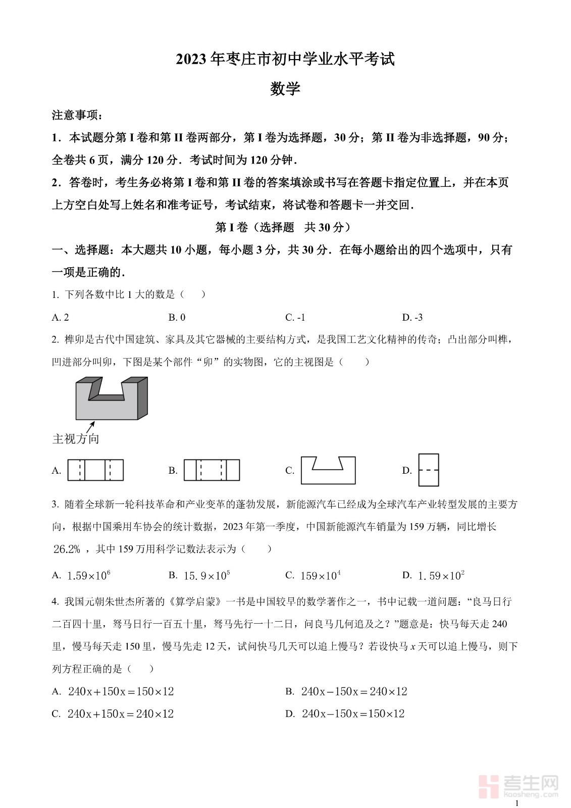2023年山东省枣庄市中考数学真题(原卷版)
