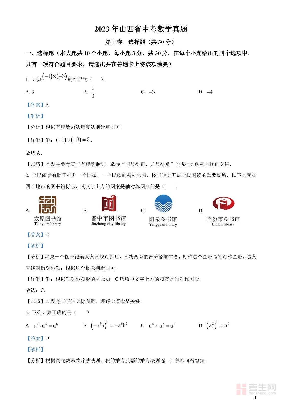 2023年山西省中考数学真题(解析版)