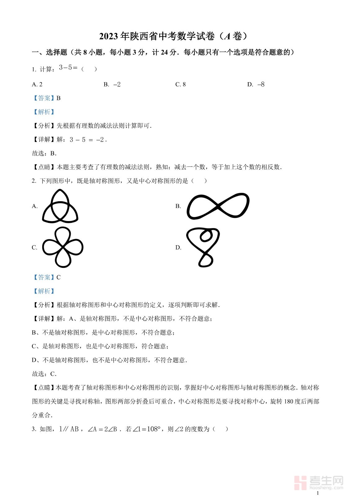 2023年陕西省中考数学试卷(A卷)(解析版)