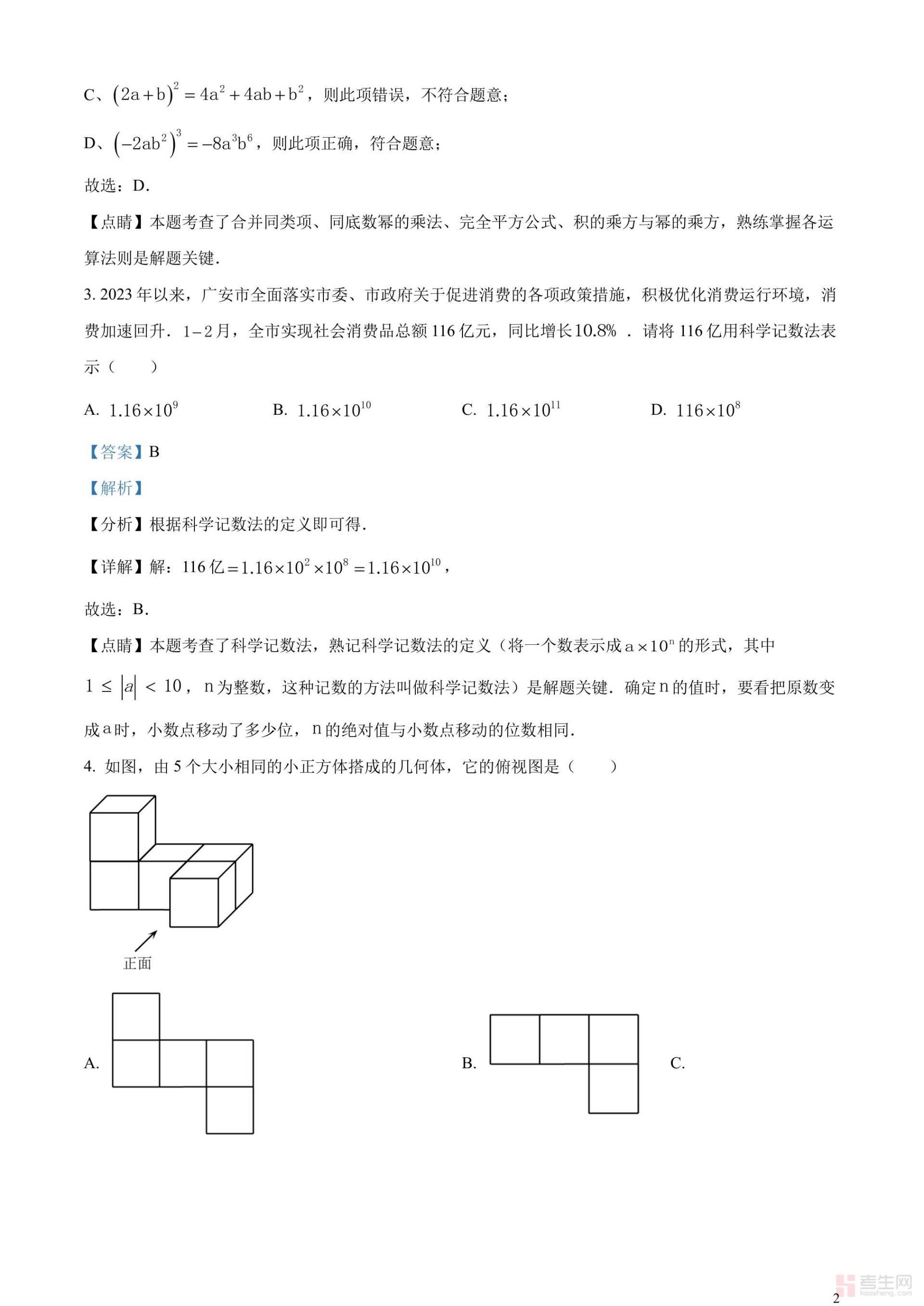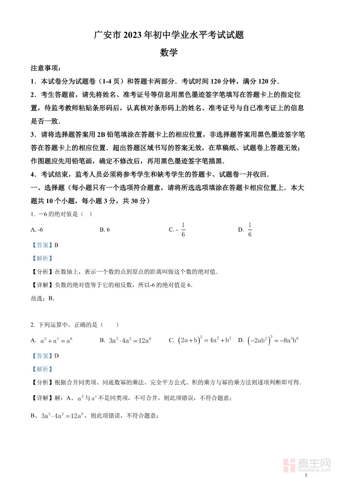 2023年四川省广安市中考数学真题(解析版)