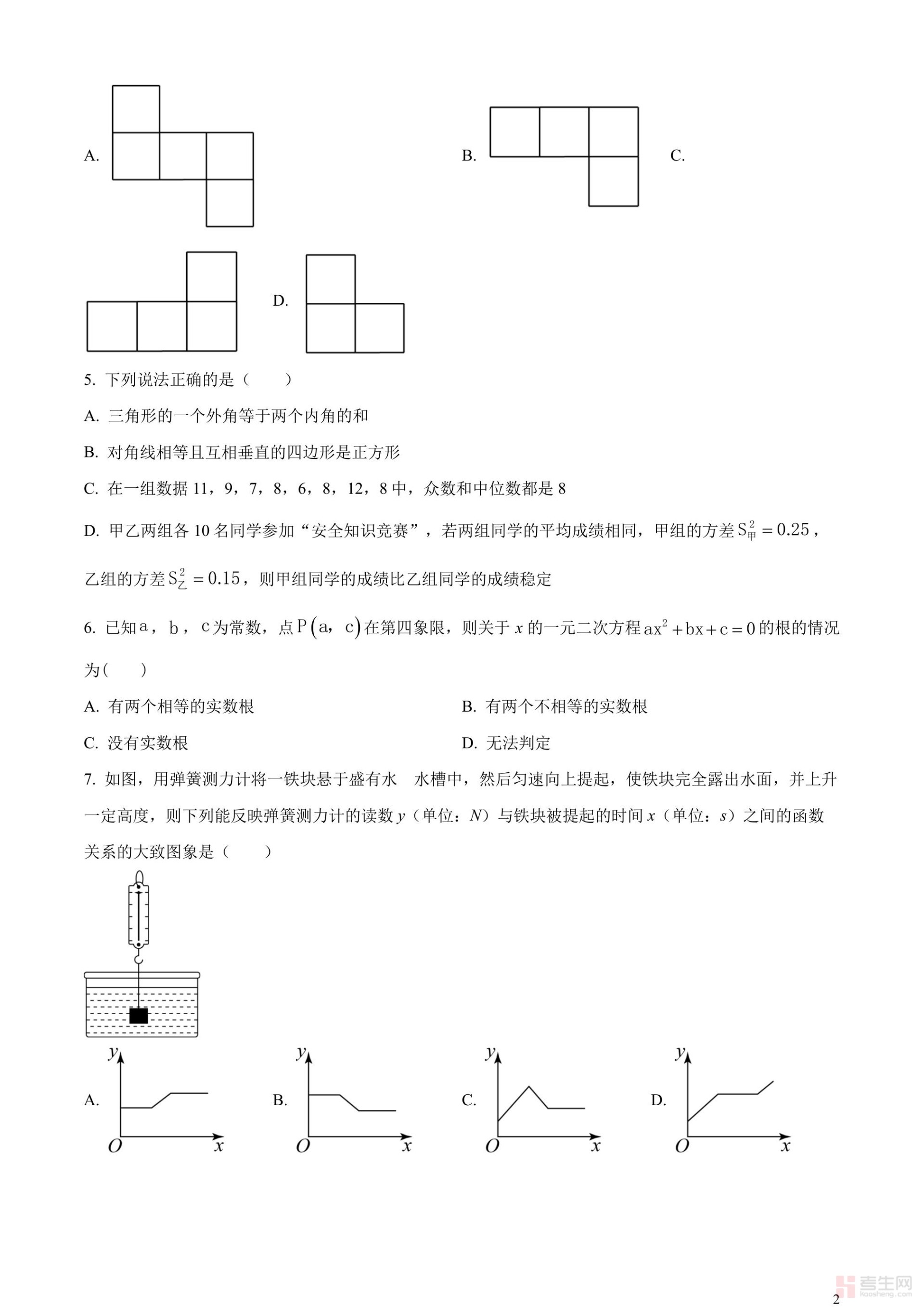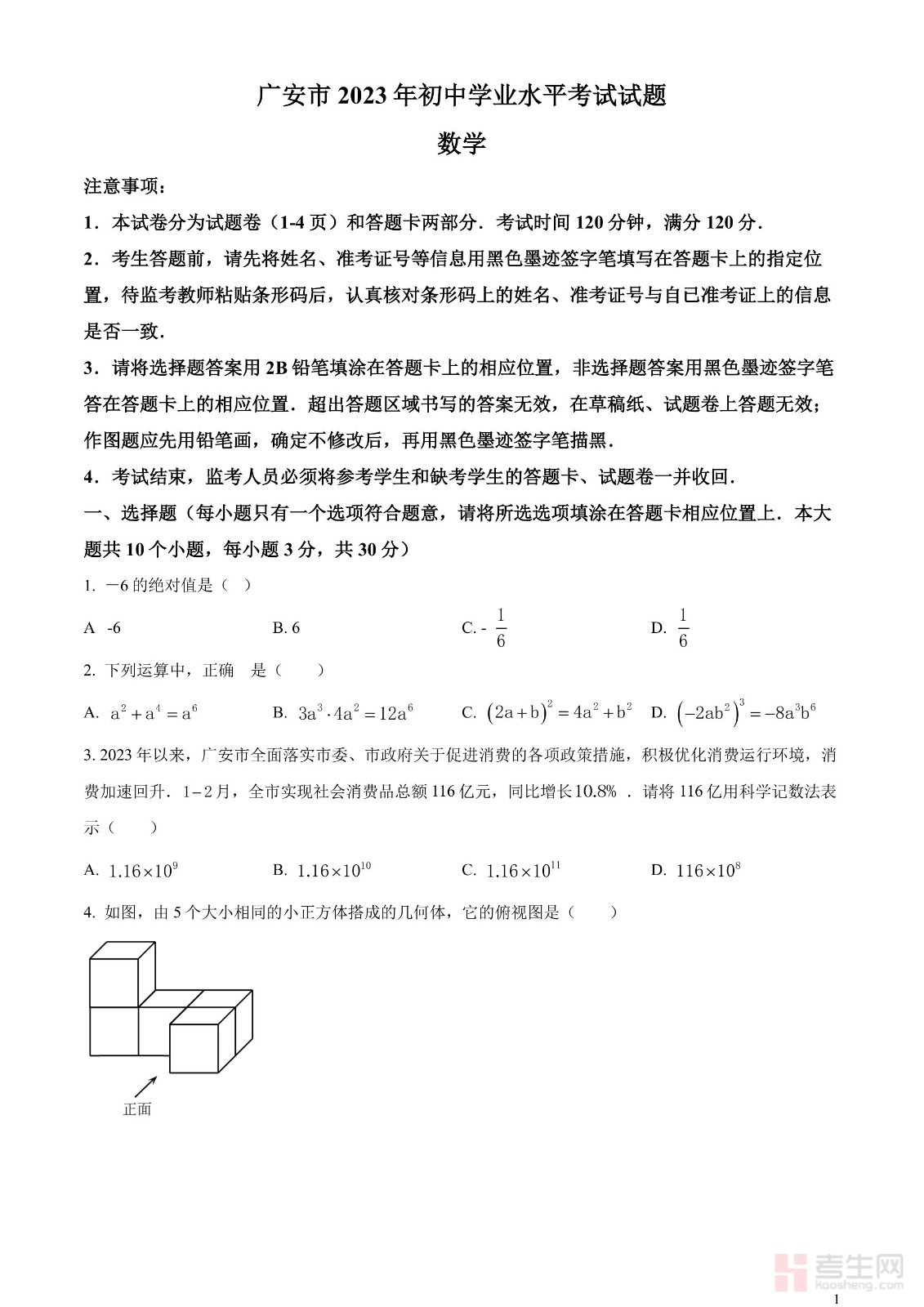 2023年四川省广安市中考数学真题(原卷版)