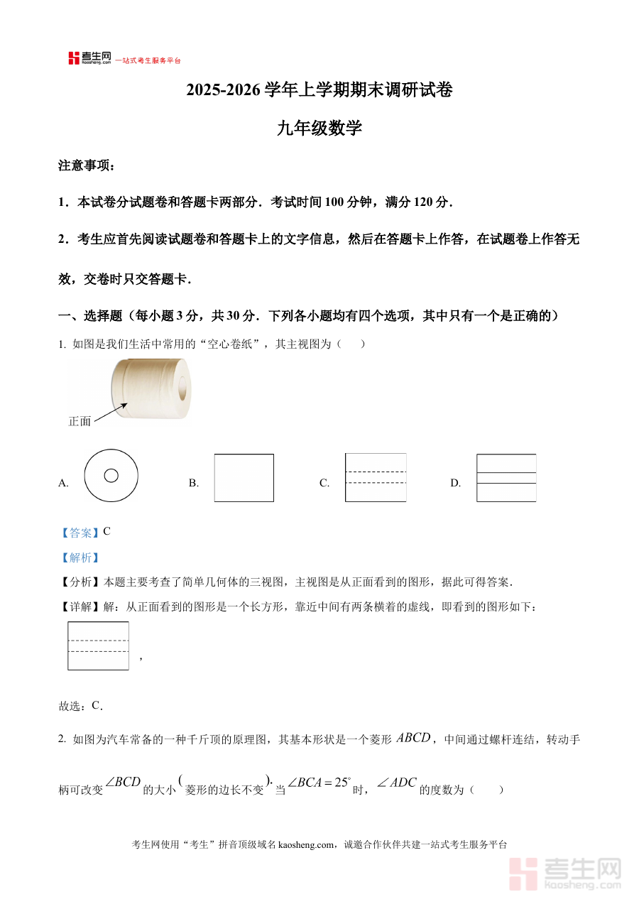 《精品解析:河南省郑州高新技术产业开发区行知中学2025-2026学年上学期九年级期末数学试卷(解析版)》是针对河南省郑州高新技术产业开发区行知中学2025-2026学年上学期九年级期末数学考试的专项备考资料,聚焦该阶段数学学科的期末检测需求,为学生提供贴合本校考试情境的复习支持。