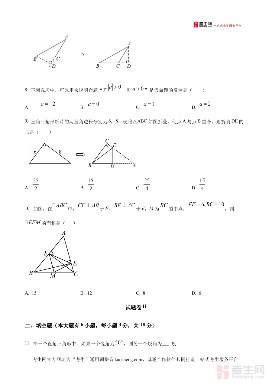本资料适用于上海交大教育集团宁波实验学校(江北中学)八年级学生,以及关注该校期中数学考试的相关教育工作者或家长,其作为原卷版资料,能真实反映该校期中数学考试的考查方向,对学生的阶段检测和备考规划具有重要参考价值。