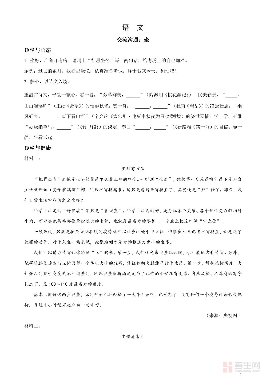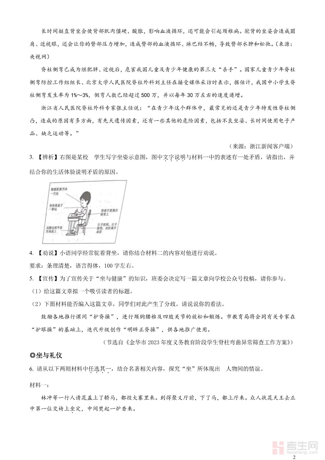 2023年浙江省金华市中考语文真题(原卷版)