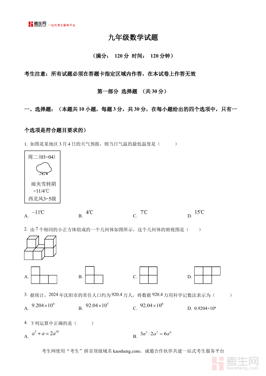 《精品解析:2025年辽宁省沈阳市沈河区中考二模数学试卷(原卷版)》是针对2025年辽宁省沈阳市沈河区初中毕业生设计的中考二轮模拟考试数学学科原卷资料,紧密贴合当地中考命题趋势与沈河区教学实际,为考生提供与真实二模考试一致的试卷呈现形式。