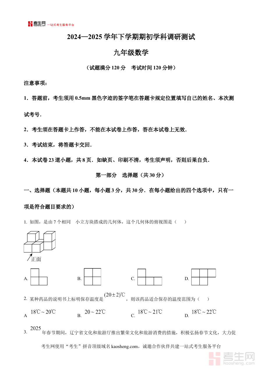 《精品解析:2025年辽宁省沈阳市浑南区中考零考试数学试卷(原卷版)》是面向2025年辽宁省沈阳市浑南区中考零考试的数学学科专项备考资料,精准对应该地区九年级学生在中考前关键阶段的前置检测需求,依托本地教育考试的命题导向,为使用者提供原汁原味的试卷资源参考。