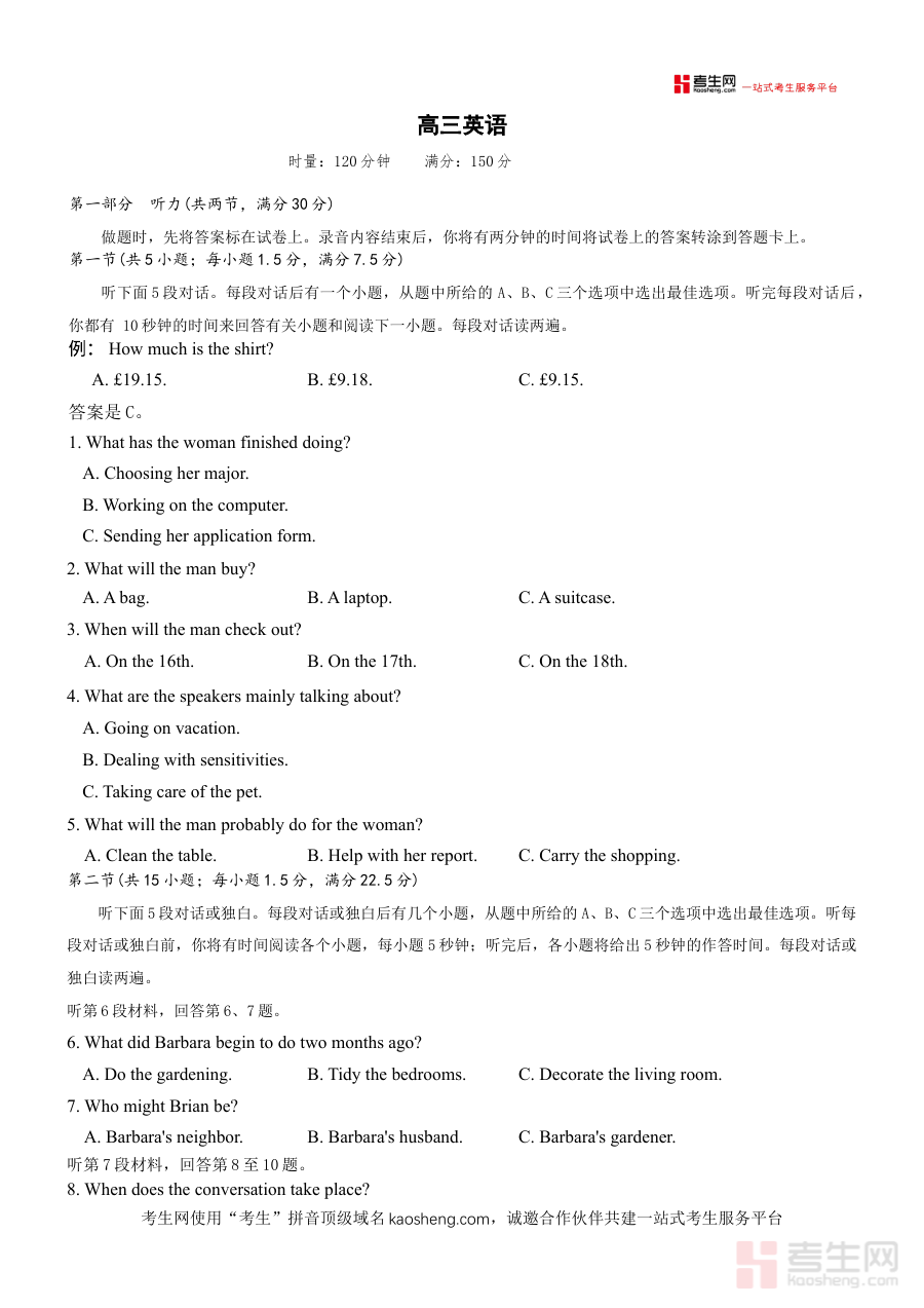该资料适用于湖南省长沙市第一中学及同类学校的高三英语学习者,也可供高中英语教师参考使用。通过使用这份试题,学生可熟悉期末考的考查形式与节奏,优化备考策略;教师则能借助试题内容把握考查方向,调整教学重点以提升教学的精准性与有效性。