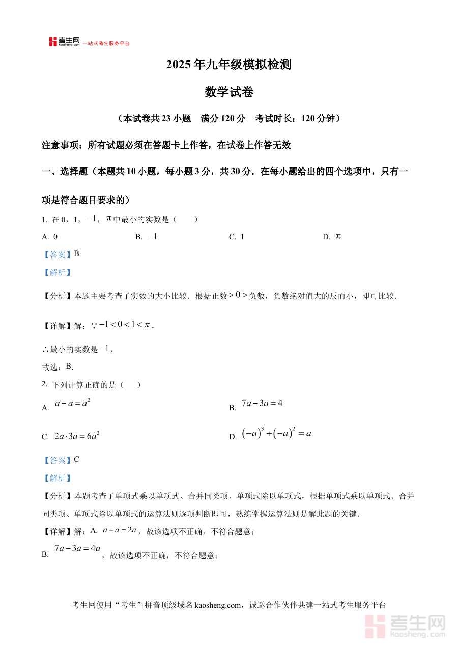 《精品解析:2025年辽宁省沈阳市第七中学协作体九年级中考零模数学试卷(解析版)》是针对2025年辽宁省沈阳市第七中学协作体组织的九年级中考零模数学考试推出的配套解析类备考资料。该考试作为中考前关键的阶段性测试,旨在帮助学生提前熟悉中考数学的命题风格与考试节奏,而解析版资料则为这一测试提供了专业系统的参考支持。