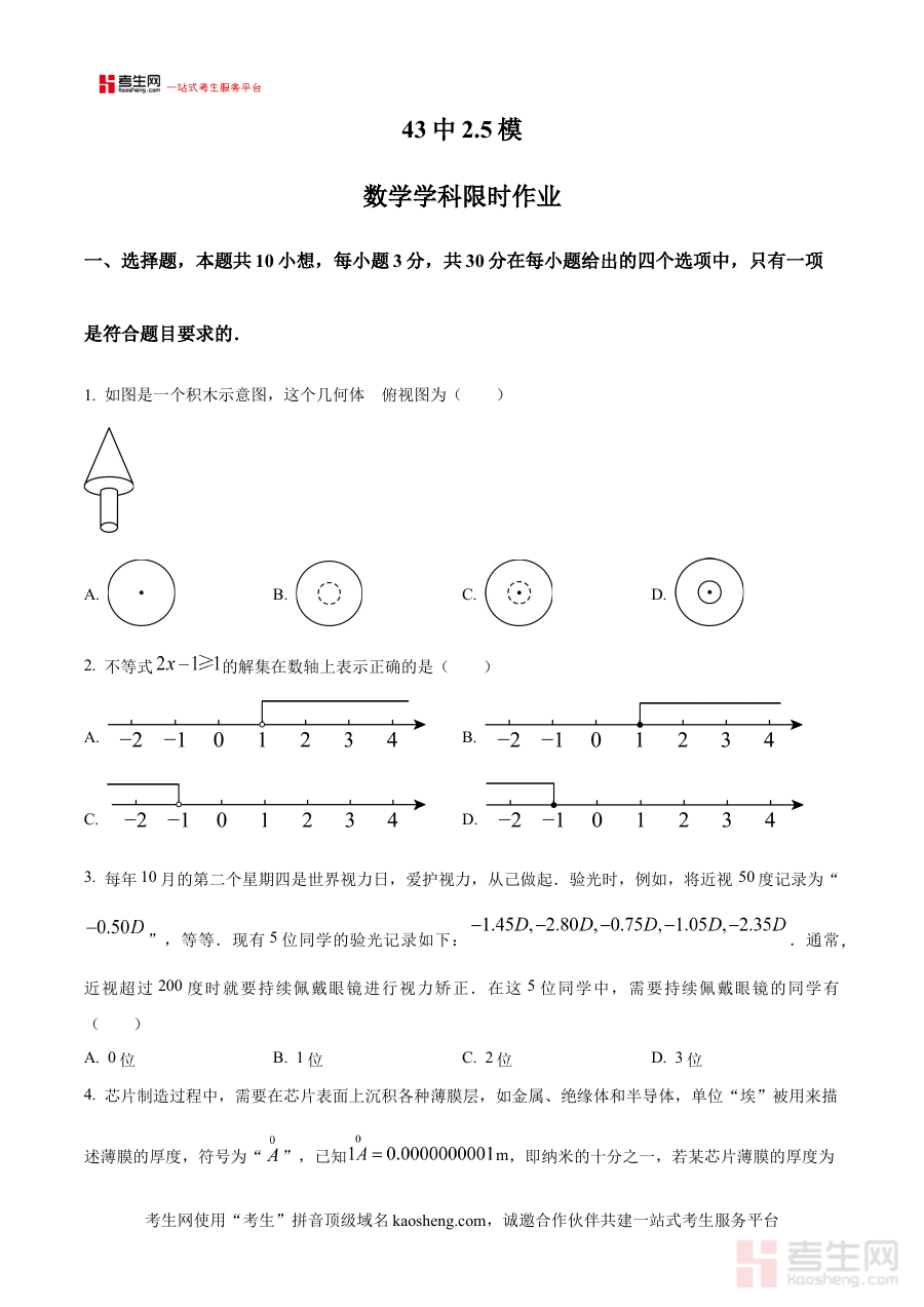 《精品解析:2025年辽宁省沈阳市第四十三中学中考三模数学试题(原卷版)》是针对2025年辽宁省沈阳市中考阶段的数学备考资料,聚焦于沈阳市第四十三中学的中考三模考试场景,能够为考生提供贴近本地校考实际的练习载体,帮助考生熟悉校考命题风格与考试节奏。