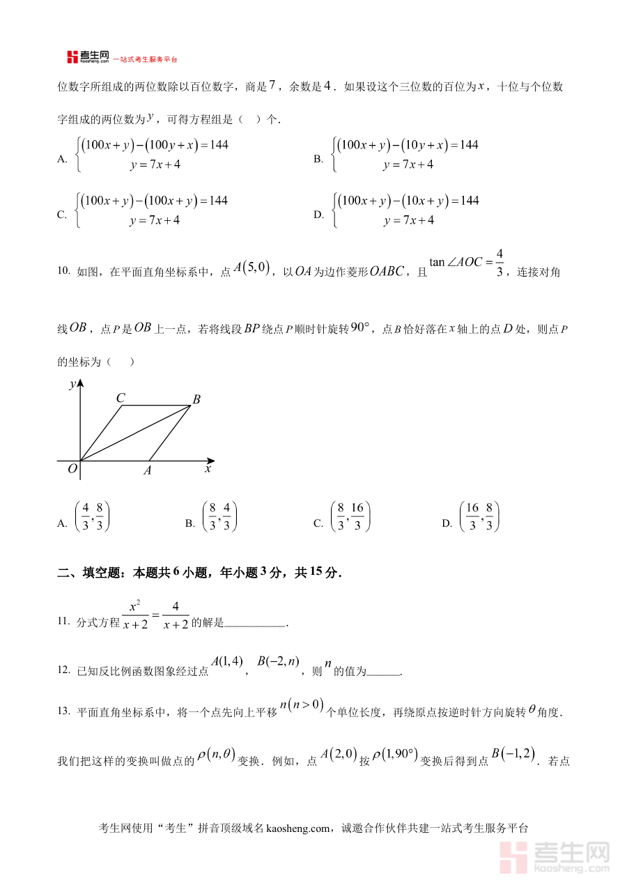 该资料作为中考三模阶段的原卷版试题,可帮助使用者进行阶段性学情诊断,明确自身在数学学科上的知识掌握情况与能力短板,为后续的备考规划提供精准数据支撑,助力考生在中考前的关键阶段合理调整复习策略,提升备考效率与针对性。