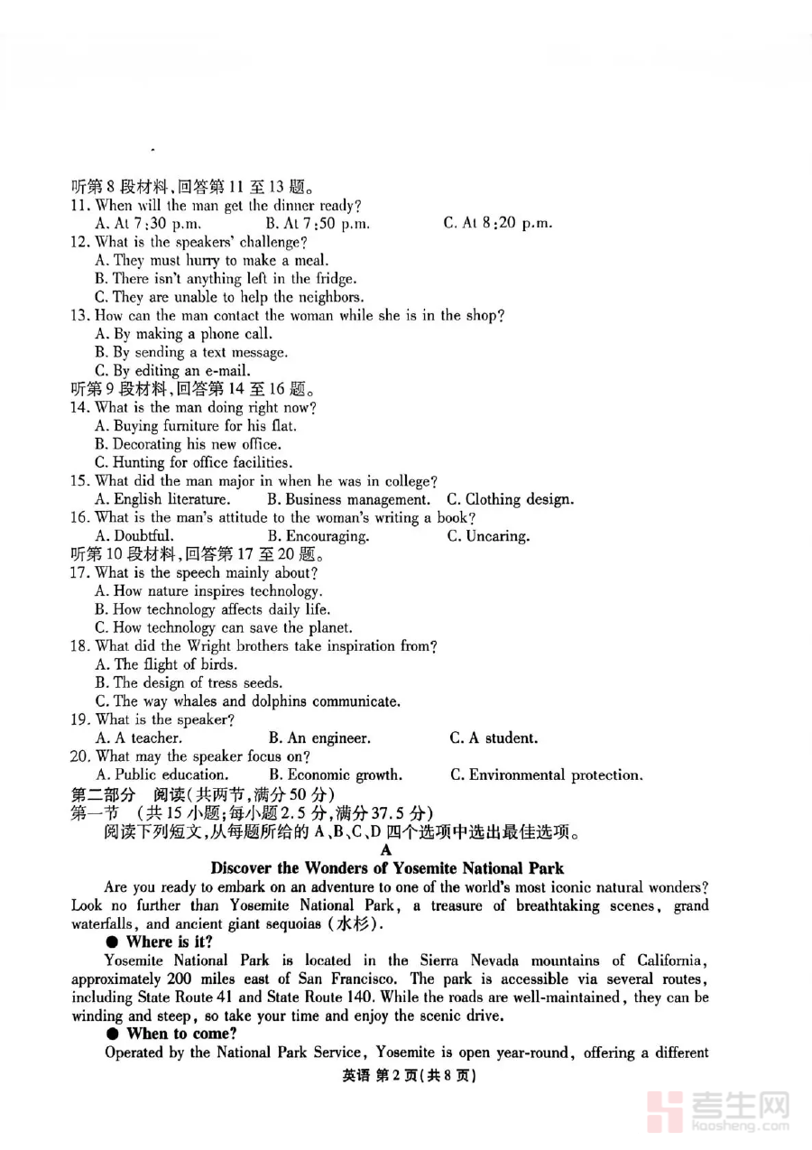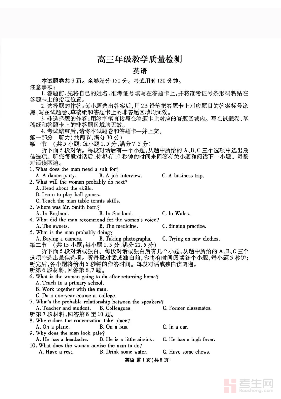 该资料可作为高三学生在2月阶段进行英语学科学习情况诊断的重要工具,帮助学生清晰认知自身知识掌握程度与能力短板,同时也为教师提供客观的学情数据参考,助力教师制定更具针对性的后续备考计划,有效提升备考效率与质量。