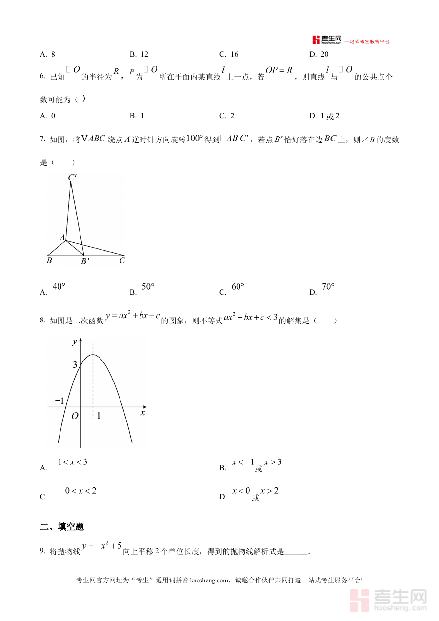 作为原卷版的考试资料,它可有效用于九年级学生开展阶段性学情诊断工作,帮助师生清晰了解当前数学学习的知识掌握情况与能力水平,为后续教学计划调整和个性化学习规划提供可靠的数据支持;同时也能作为学生日常备考练习的核心材料,让学生提前熟悉该校月考的命题思路、题型结构与考试形式,显著提升应对考试的适应性和自信心。