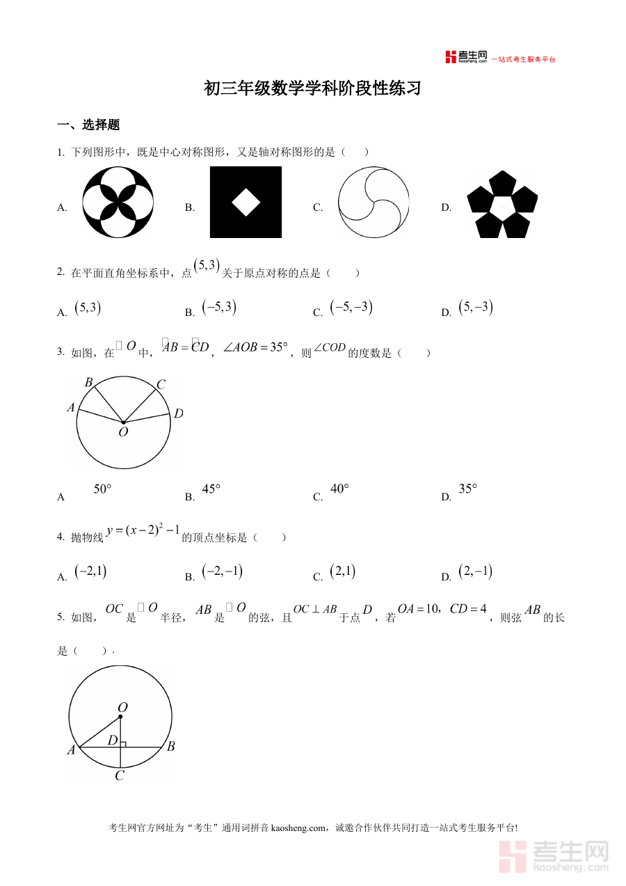 该资料主要适用于北京市朝阳区北京中学2025-2026学年九年级的在读学生,以及负责该年级数学教学任务的教师群体。对于学生而言,通过使用该资料进行针对性练习或模拟测试,可及时发现自身学习中的薄弱环节并进行针对性补强训练;对于教师来说,能够借助该资料全面了解阶段教学效果,精准优化教学策略与内容,助力提升整体教学质量与学生的数学学习成效,为后续中考备考奠定坚实基础。