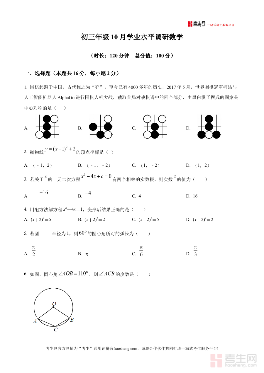 《精品解析:北京市第一七一中学2025-2026学年九年级上学期数学月考(10月)试题(原卷版)》是针对北京市第一七一中学2025-2026学年九年级上学期10月数学月考的原卷资料,属于初中阶段数学学科的阶段性检测备考资源,精准对应该校九年级学生学期初期的数学学习进度与考查需求。