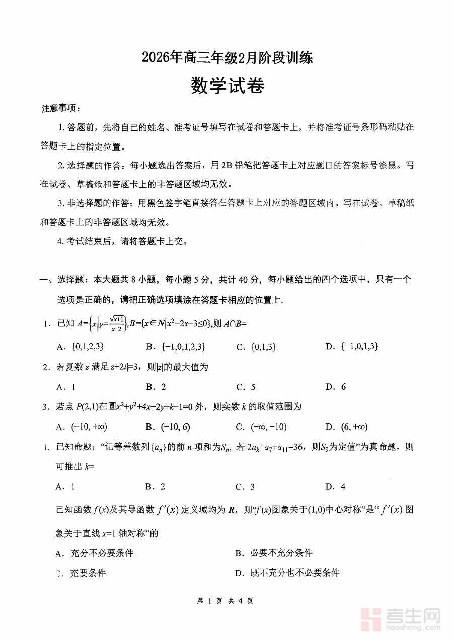 《2026年云学联盟高三年级2月数学阶段训练》是云学联盟针对其体系内高三年级学生设计的数学学科阶段性训练资料,发布时间为2026年2月,属于高三数学备考过程中的重要阶段性检测工具,旨在为学生的数学学习提供精准的阶段反馈与巩固支持。