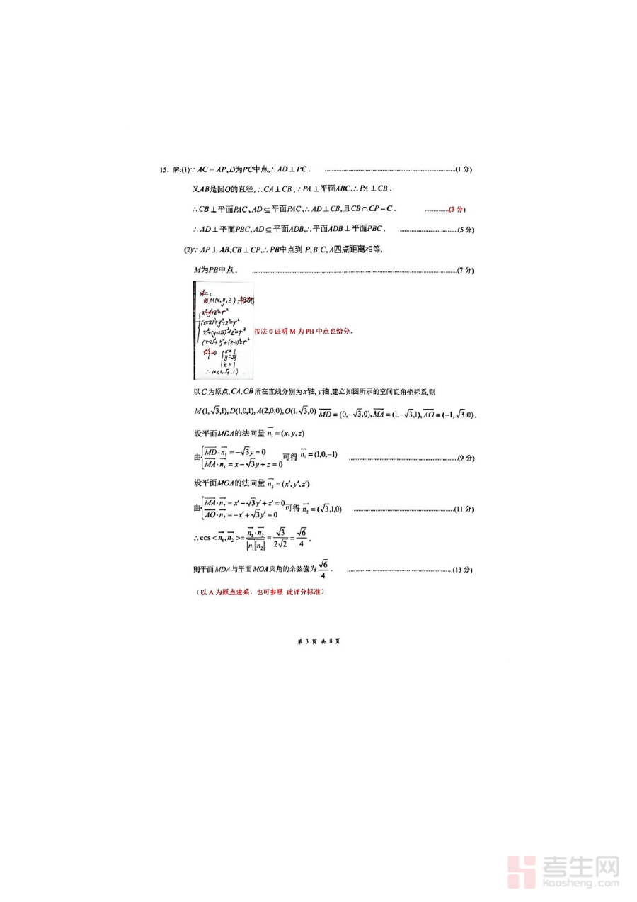 该参考答案可用于师生对阶段训练结果的核对,帮助教师掌握学生高三下学期初期数学知识的掌握状况,为后续教学调整与备考规划提供依据;同时助力学生及时识别自身知识短板,明确复习重点方向。