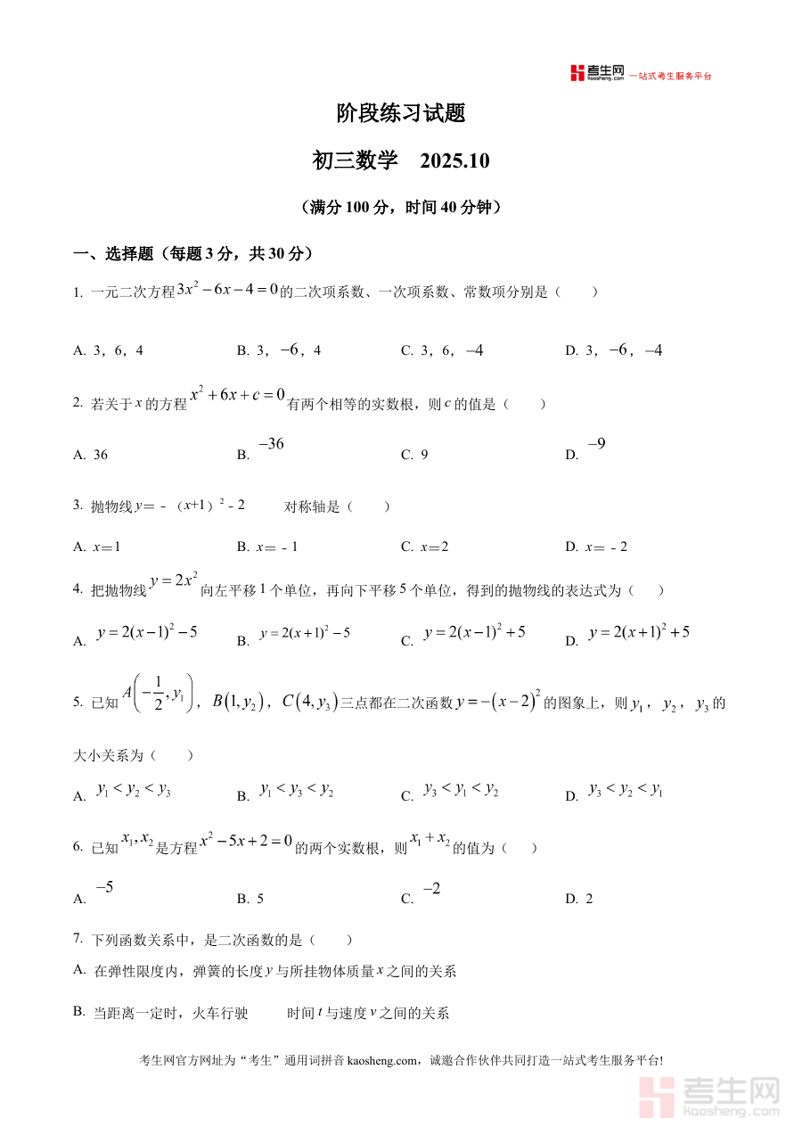本资料主要适用于北京市第十二中学2025-2026学年上学期的数学教师及在读学生,对于学生而言完成原卷可提前熟悉校考形式与考查重点提升月考应对能力;对于教师而言可利用该试题开展阶段检测与教学评估增强教学的针对性和实效性。