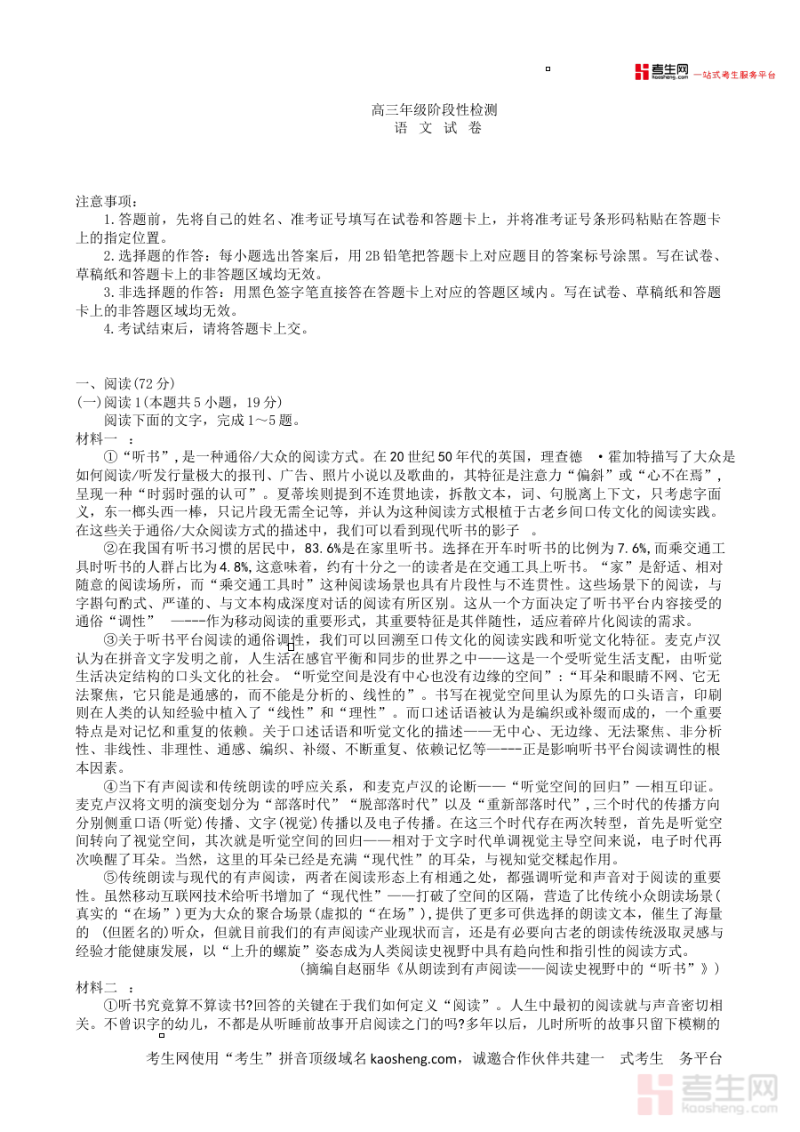 该试卷主要适用于2026届湖北省高三年级学生,尤其是参与湖北云学联盟联考的学校师生群体。对于学生而言,它是高三下学期初期阶段性学习成果的重要检验工具,能帮助他们在高考前的关键复习阶段精准定位知识漏洞,优化个性化复习计划;对于教师而言,它是开展学情分析与教学调整的核心依据,有助于增强备考指导的针对性与有效性。此外,该试卷也可为其他同类区域的高三语文备考提供参考,助力学生更好地适应联考模式下的语文考查要求。
