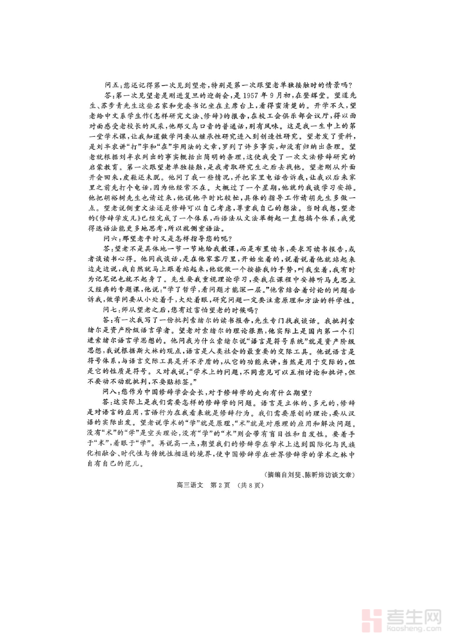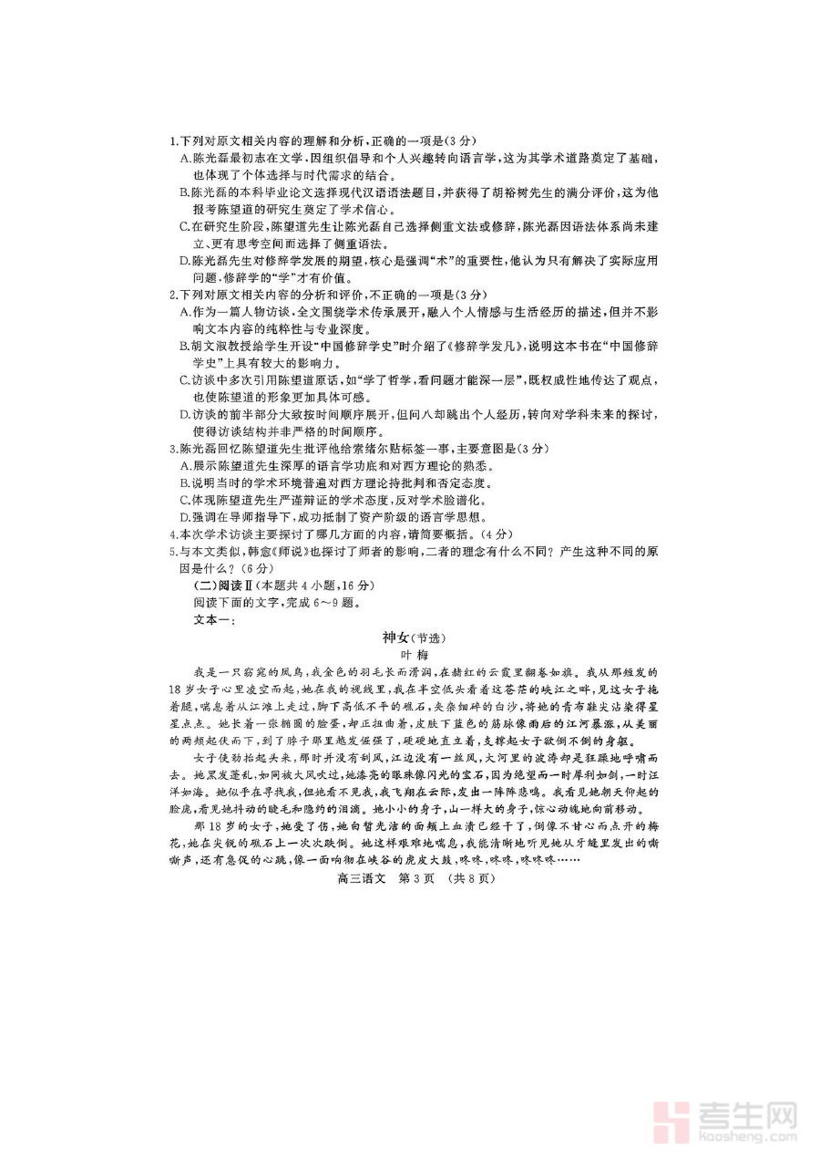 该试卷可用于高三学生的学情诊断,帮助教师与学生清晰把握当前语文学习的优势与薄弱环节,为后续的备考规划提供数据支撑;同时作为阶段检测工具,能有效检验学生在高三下学期初期对语文知识体系的掌握程度,助力教学与学习方向的调整。