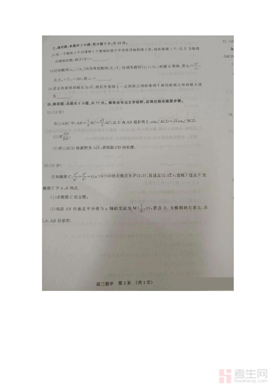 这份试卷可作为高三学生进行阶段性学情诊断的有效工具,帮助学生清晰认知自身数学学习的现状与短板;同时也为教师制定针对性备考规划提供数据支撑,助力师生调整复习策略,强化对数学核心素养的培养与巩固;此外,它还能发挥阶段检测的作用,检验高三下学期初期学生对数学知识的综合运用能力及核心素养的达成程度,为后续复习方向提供明确指引。