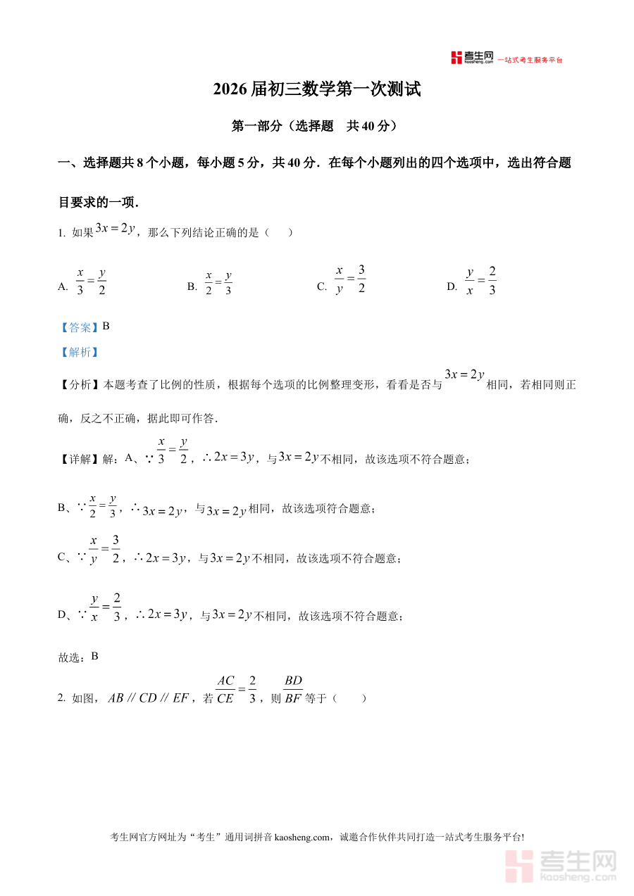 该资料以解析版形式呈现,可帮助使用者明晰月考中知识点的考查方向与作答逻辑,辅助开展学情诊断,及时识别学习薄弱环节,同时为后续备考规划提供数据支撑,助力学生针对性调整学习策略。
