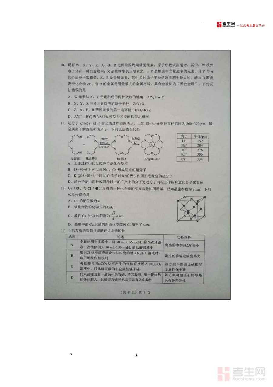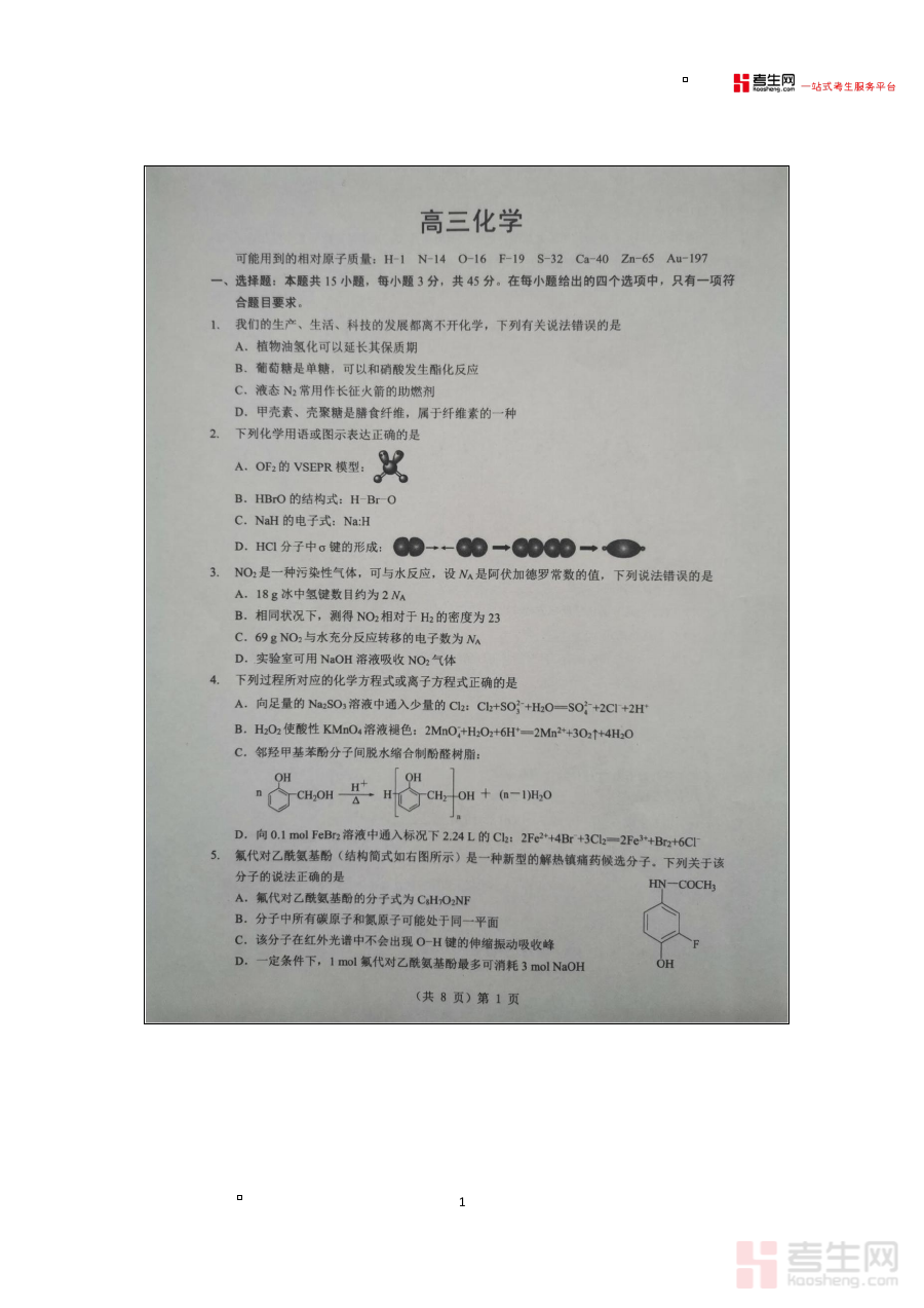 该试题可作为高三化学学习的阶段性检测工具,帮助教师精准把握学生在高三下学期初期对化学核心知识的掌握程度与应用能力,辅助学生进行自我学习诊断,识别自身在化学学习中的薄弱环节与知识盲区,同时为师生后续制定个性化的备考规划、调整复习重点提供客观的数据支撑。