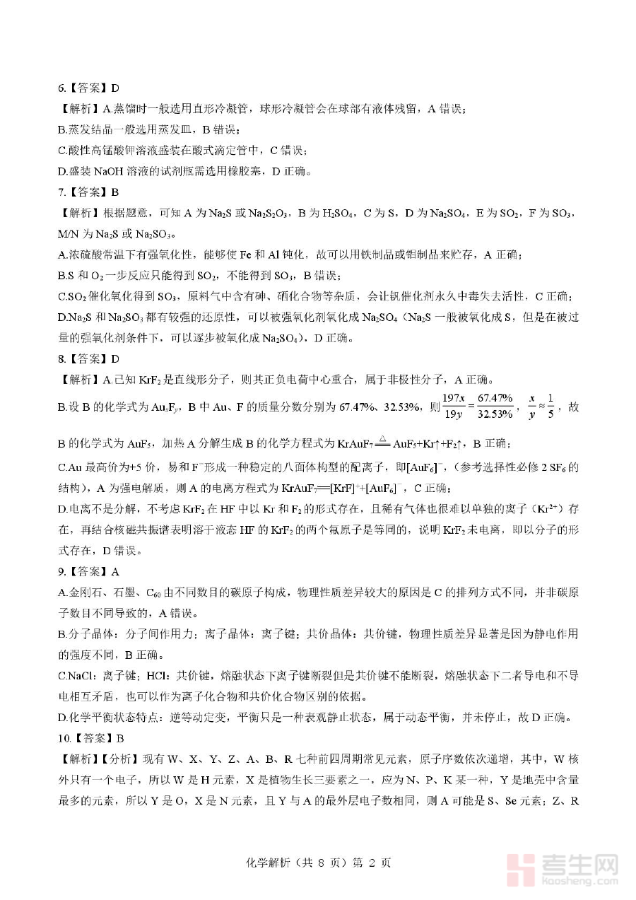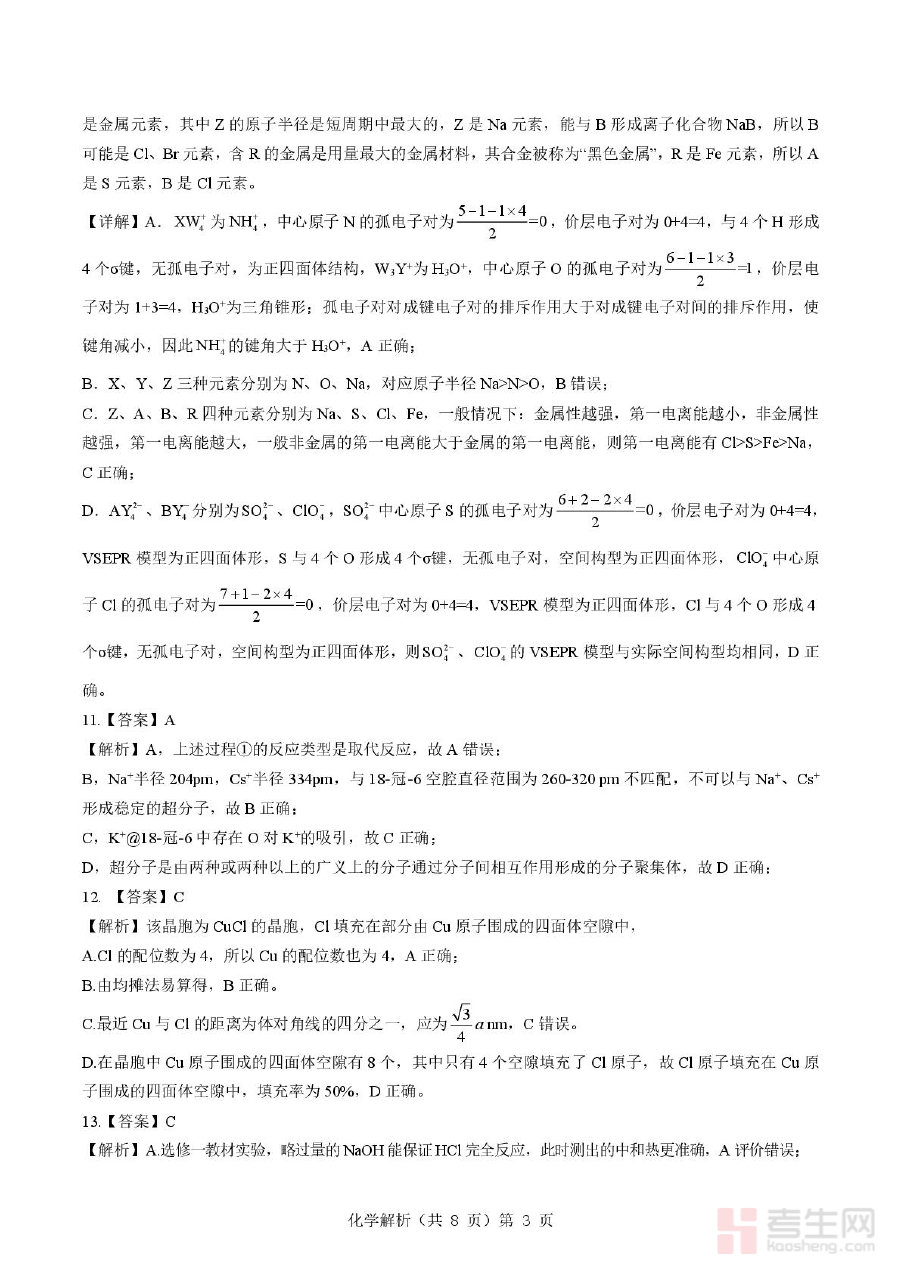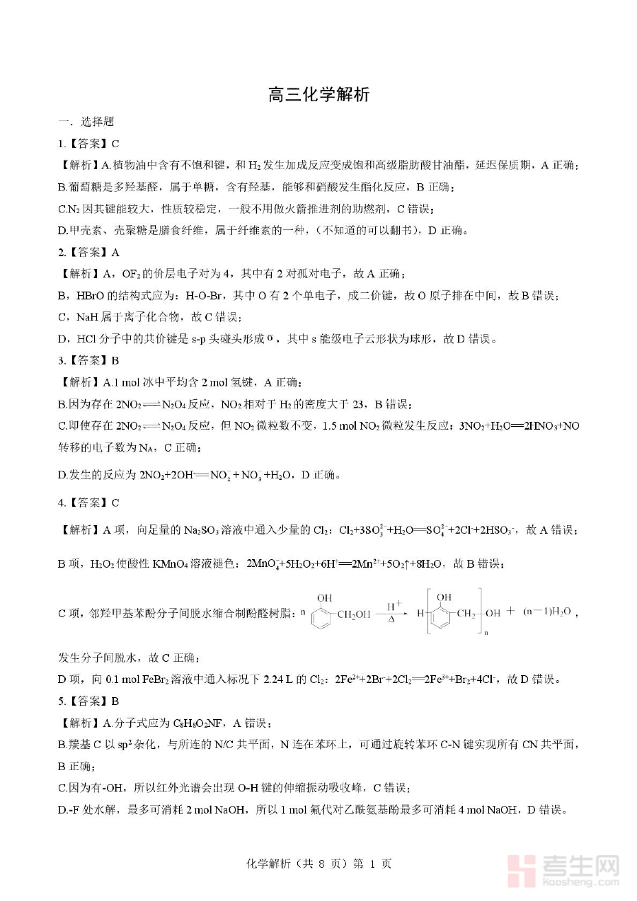作为高三下学期关键节点的检测配套资料,该解析可用于高三学生的学情诊断工作,帮助学生清晰识别自身在化学学科知识体系构建、解题思路形成等方面的现状与短板;同时也可为教师提供教学评估的参考依据,助力教师精准把握学生的学习动态,从而调整教学策略,开展更具针对性的辅导与训练活动。