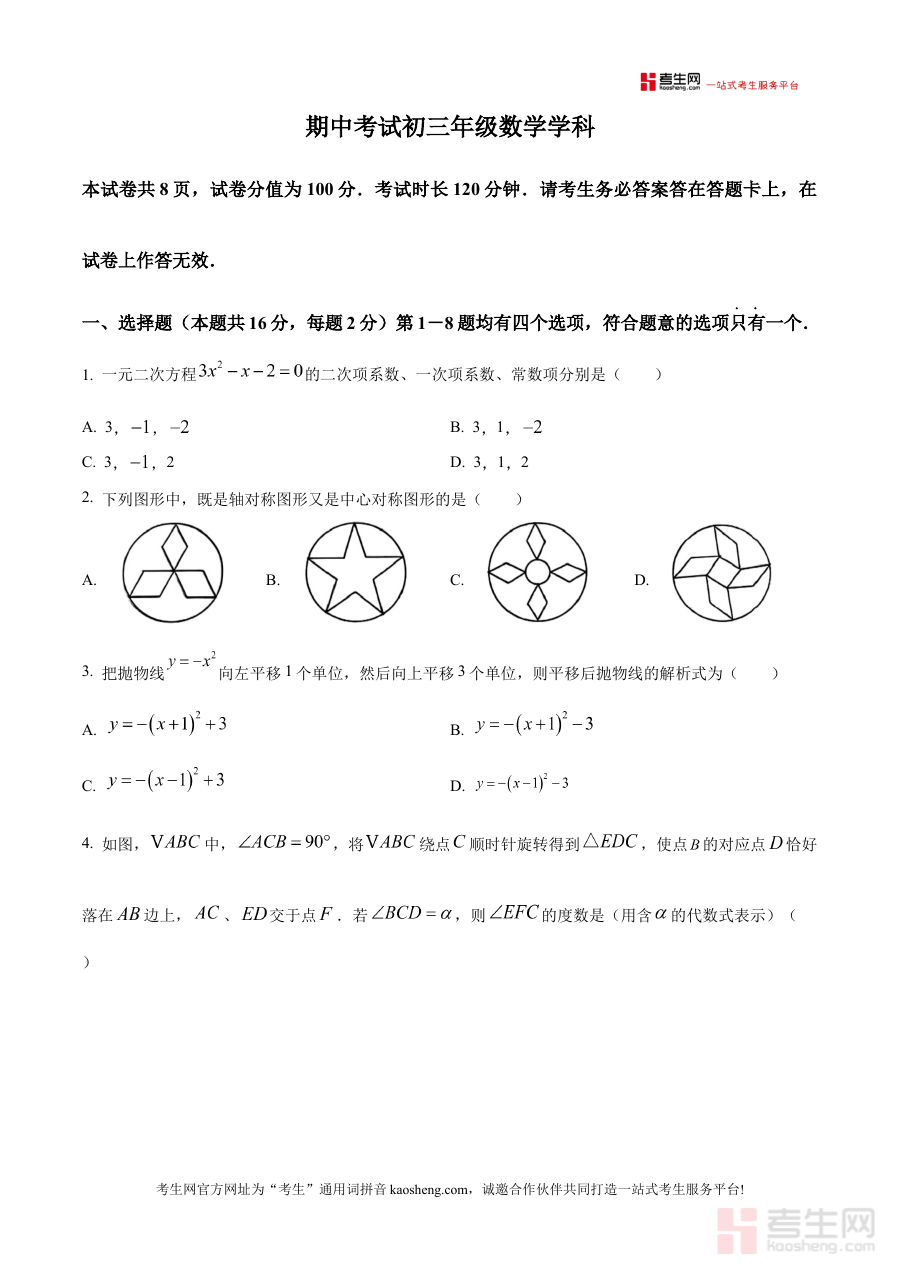 《精品解析:北京市汇文中学2025-2026学年九年级上学期期中考试数学试卷(原卷版)》是北京市汇文中学在2025-2026学年针对九年级上学期数学学科期中考试编制的原卷版资料,属于该阶段期中考试的核心备考资源,能够直接反映该校该学年九年级数学期中考试的考查方向与试卷结构。