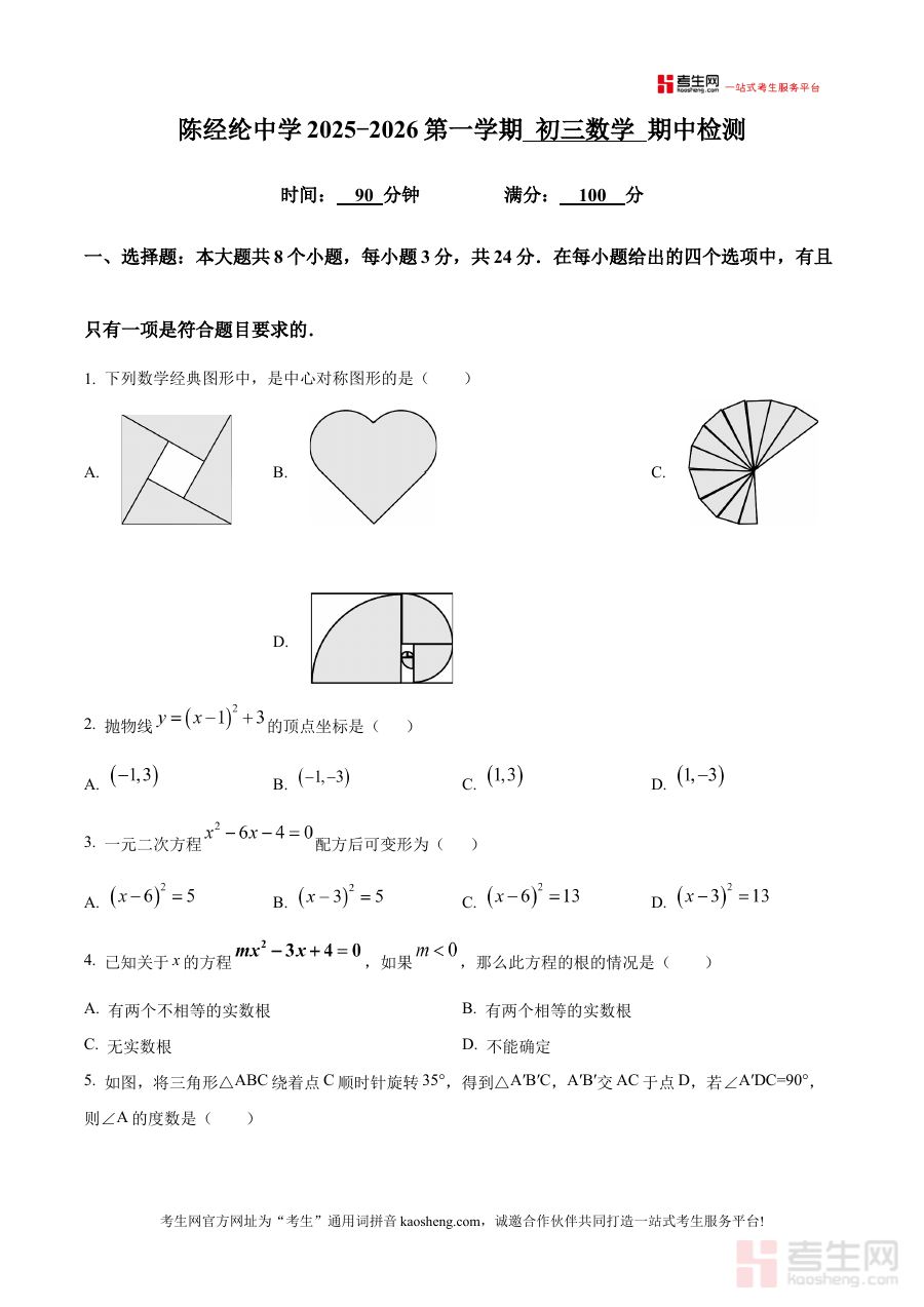 此资料适用于北京市陈经纶中学2025-2026学年上学期九年级学生、数学教师及学生家长群体,其原卷版内容能真实呈现该校期中数学考试的考查模式,对学生阶段性知识掌握情况的检测及后续备考规划具有重要参考意义。