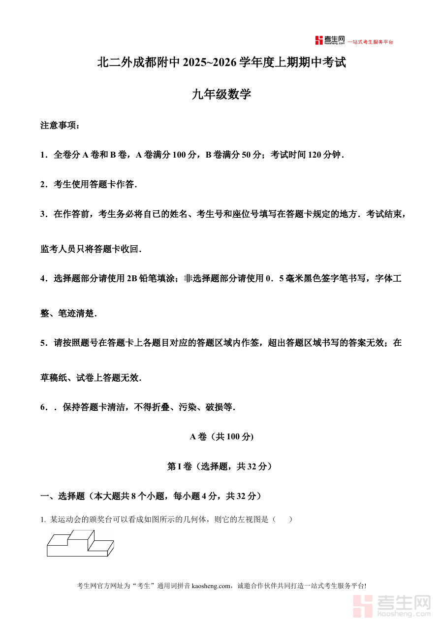 《精品解析:四川省成都市北京第二外国语学院成都附属中学2025-2026学年上学期期中考试九年级数学试题(原卷版)》是针对四川省成都市北京第二外国语学院成都附属中学2025-2026学年上学期九年级数学期中考试的专项备考资料,为相关师生提供该阶段考试的原卷内容参考,助力把握考试的整体结构与考查方向。