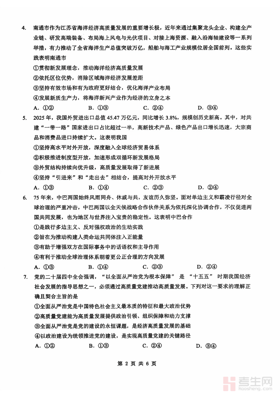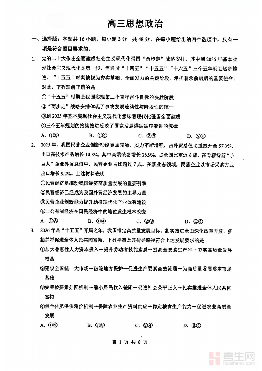 《新八校2025-2026学年高三下学期开学考试 政治》是新八校联盟在2025-2026学年高三下学期开学阶段组织的政治学科考试对应的备考资料,聚焦该关键时间节点的政治学科测评需求,依托联盟内学校的教学标准和考试要求编制,能够为参与本次考试的学生提供贴合考试场景的备考支持与参考依据。